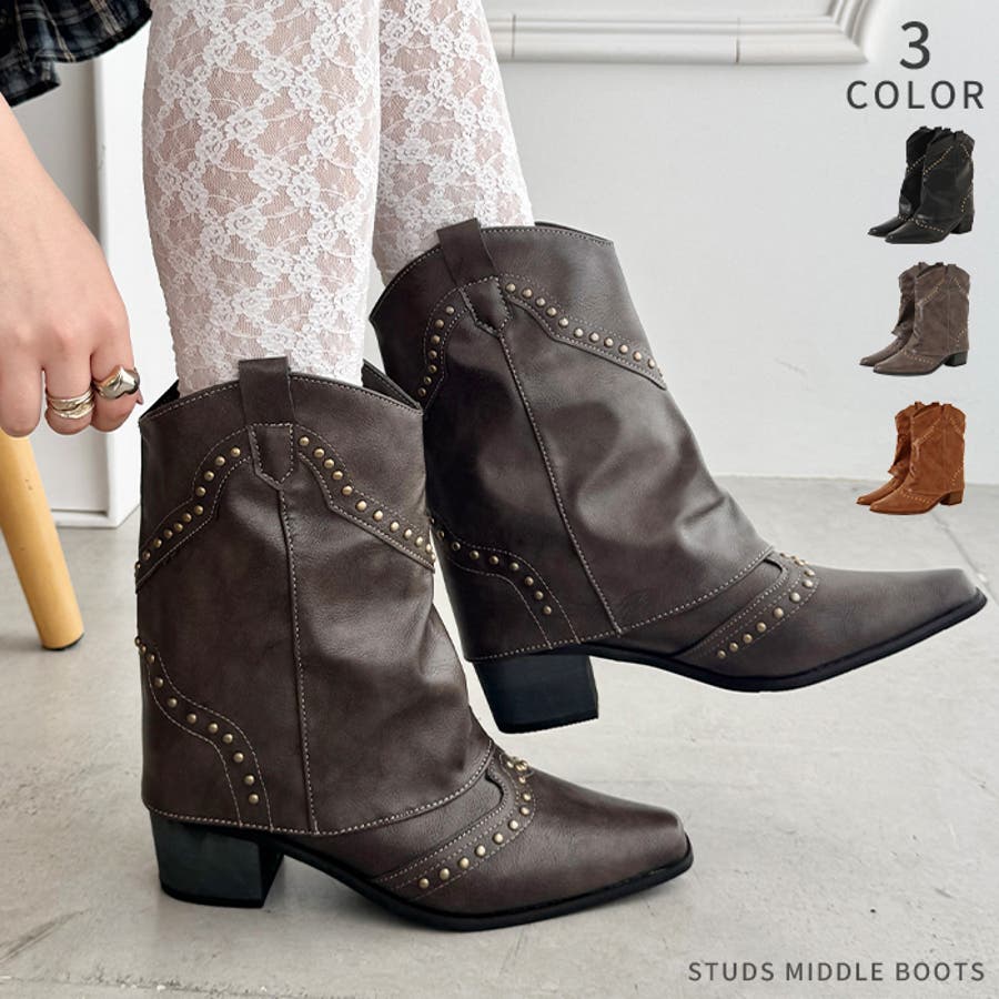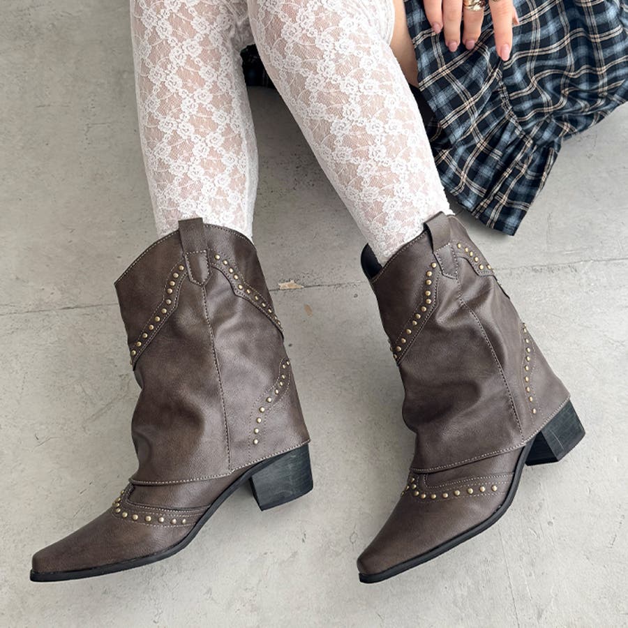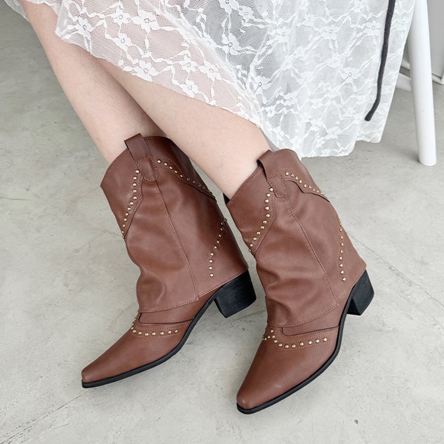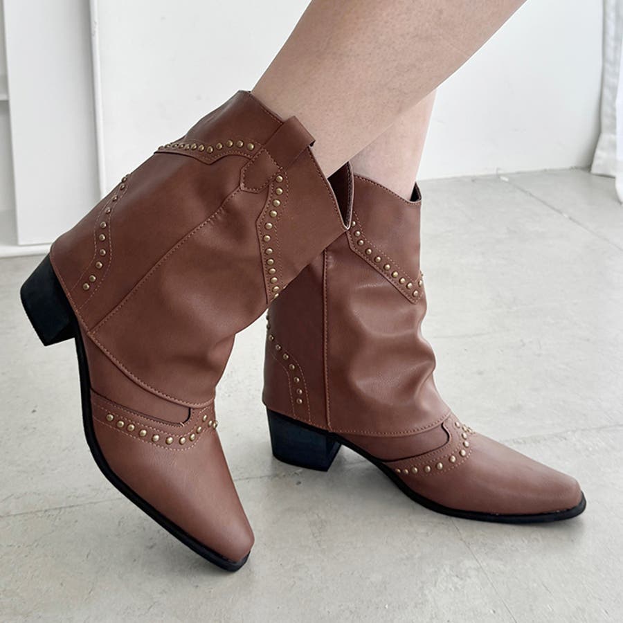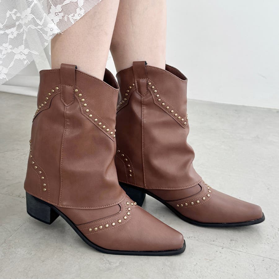 ・存在感のあるライン上のスタッズデザインが目を惹くカバーブーツ