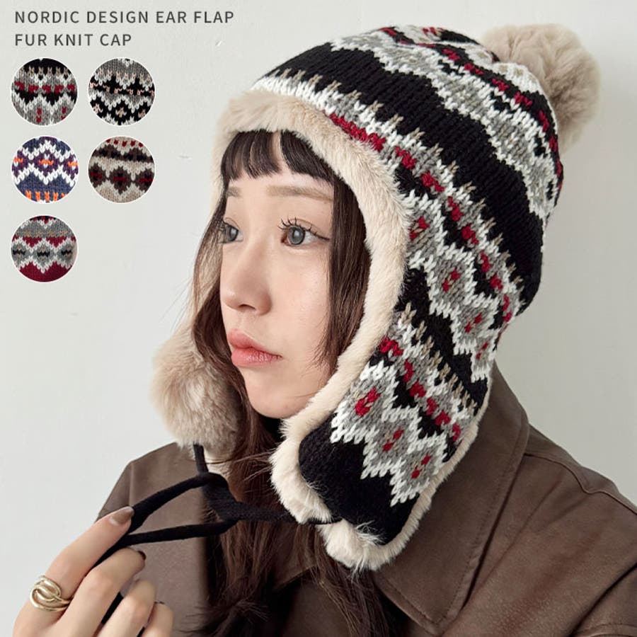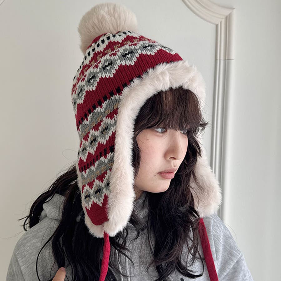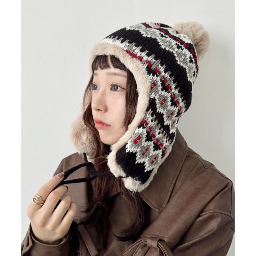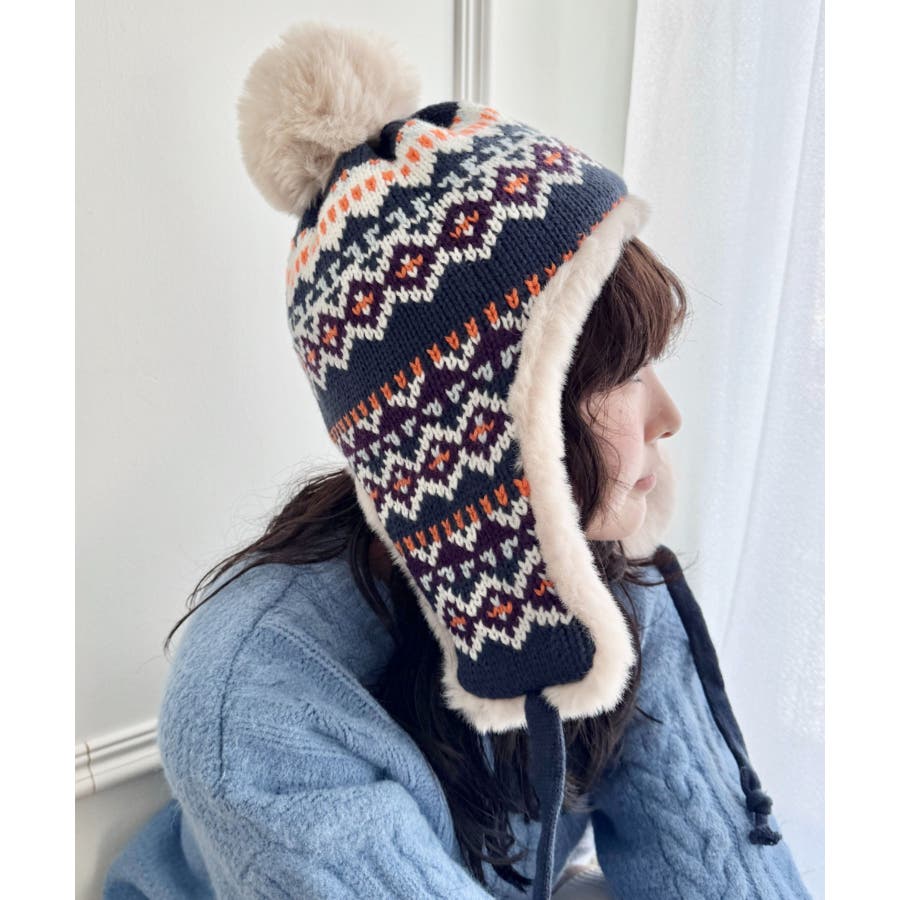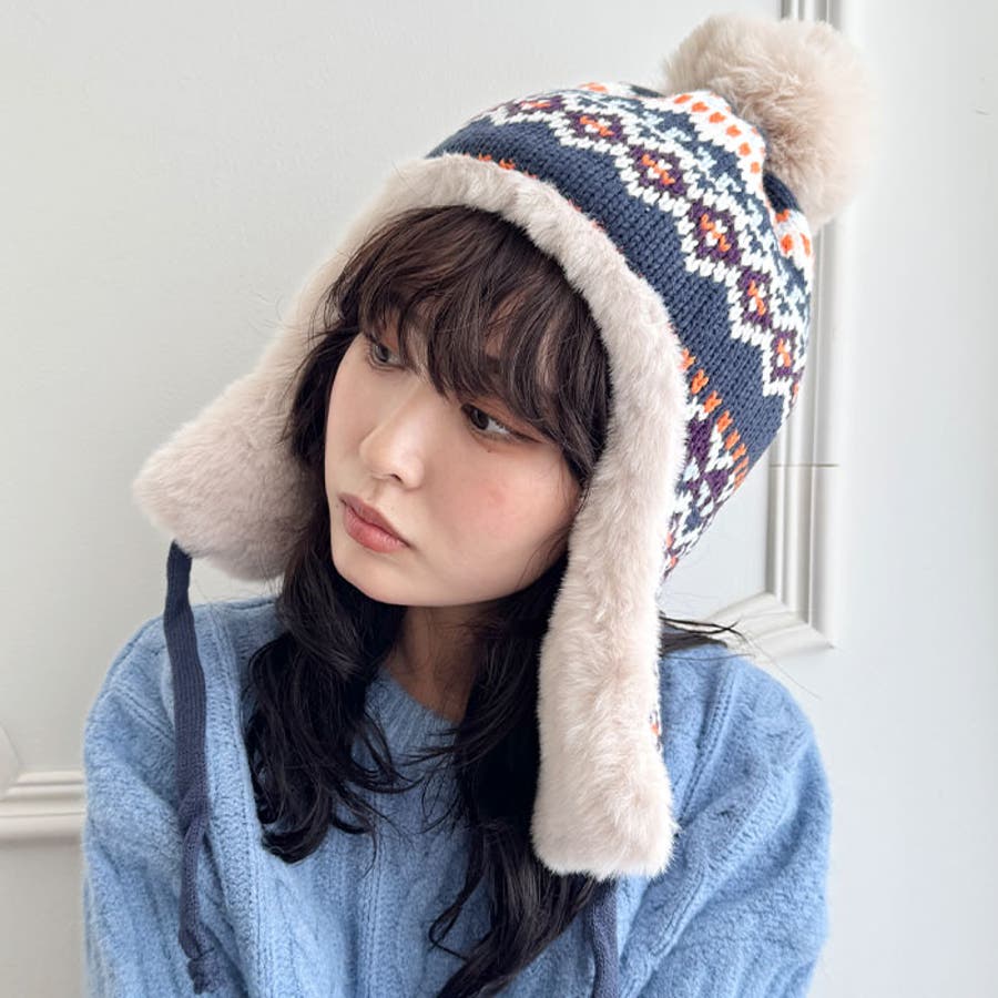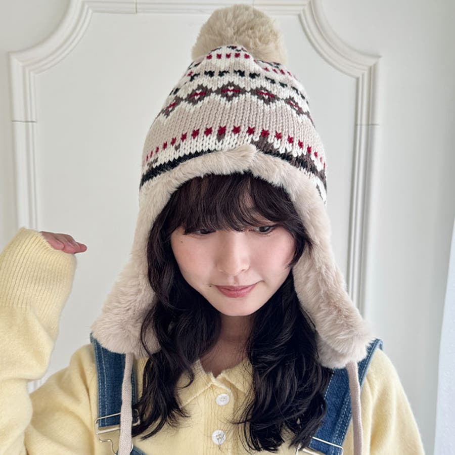 ・ノルディック柄がシーズンムード漂うニットキャップ