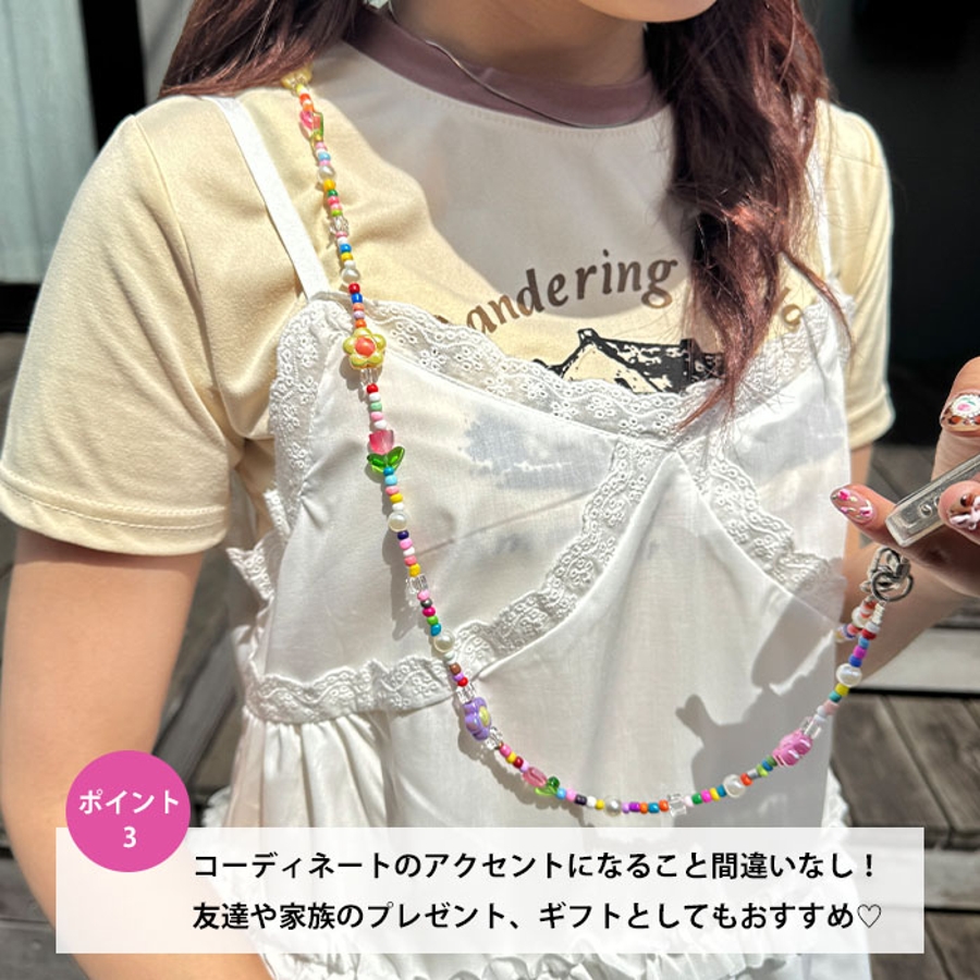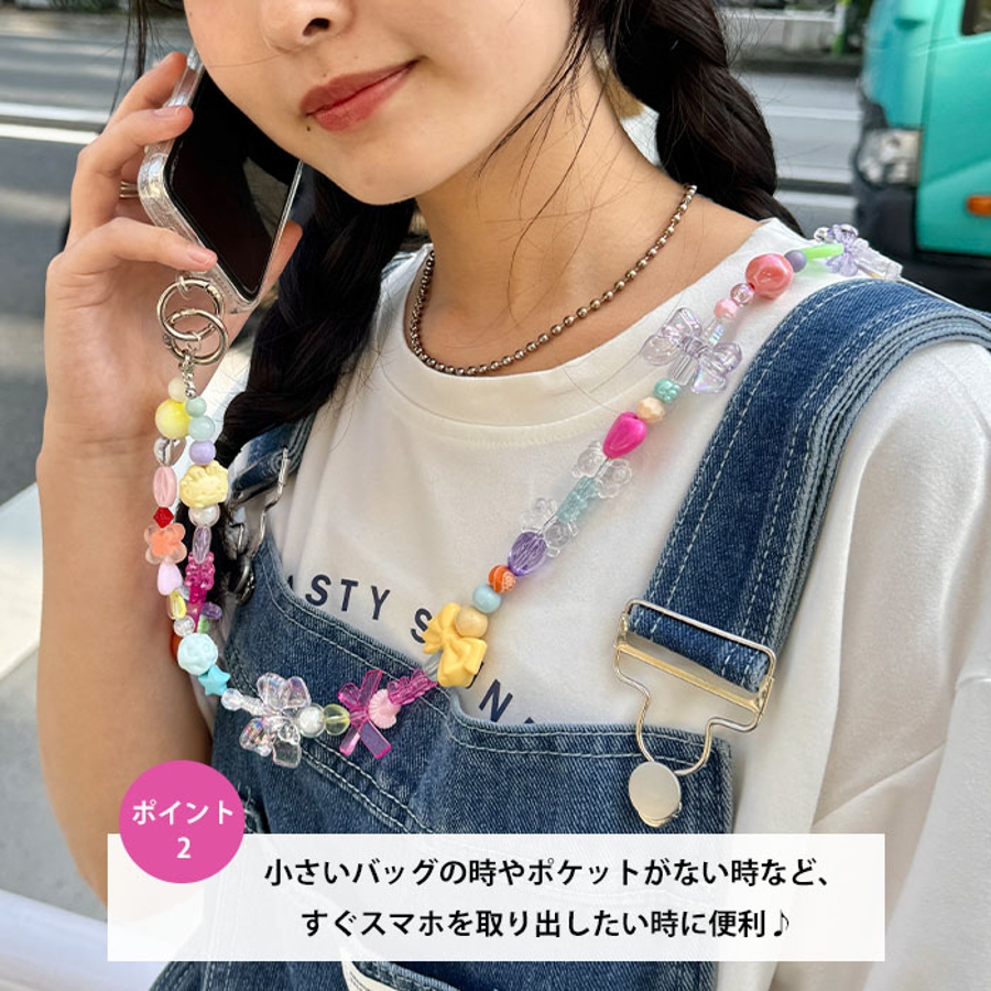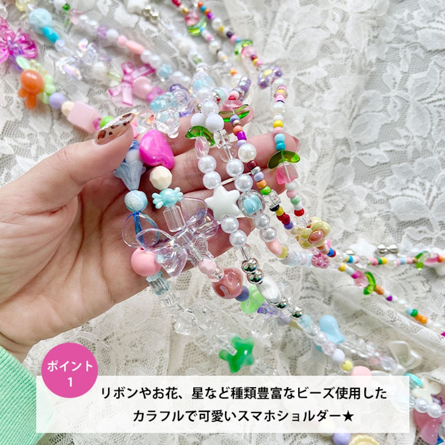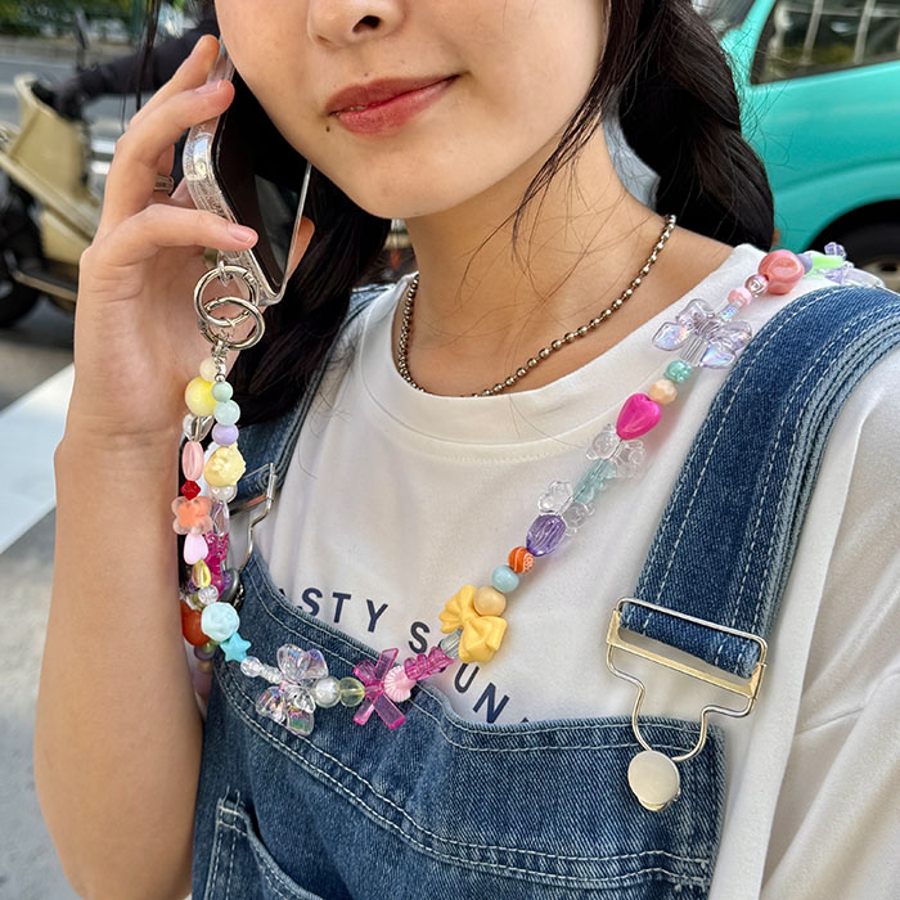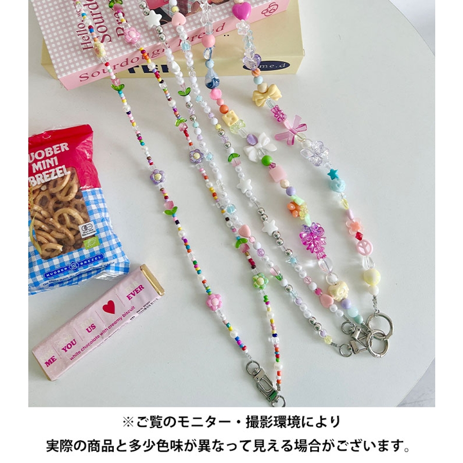 ・リボンやお花、星など種類豊富なビーズが使われており、色とりどりでポップなアイテム