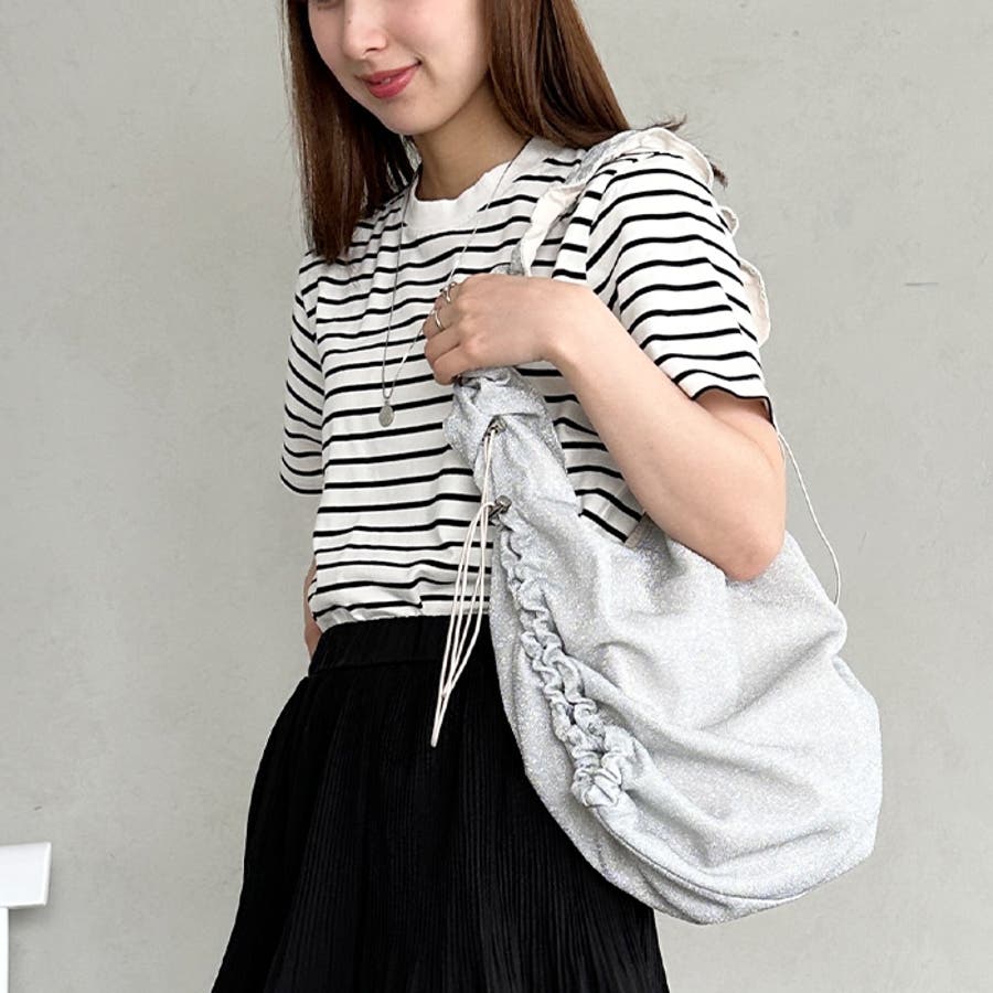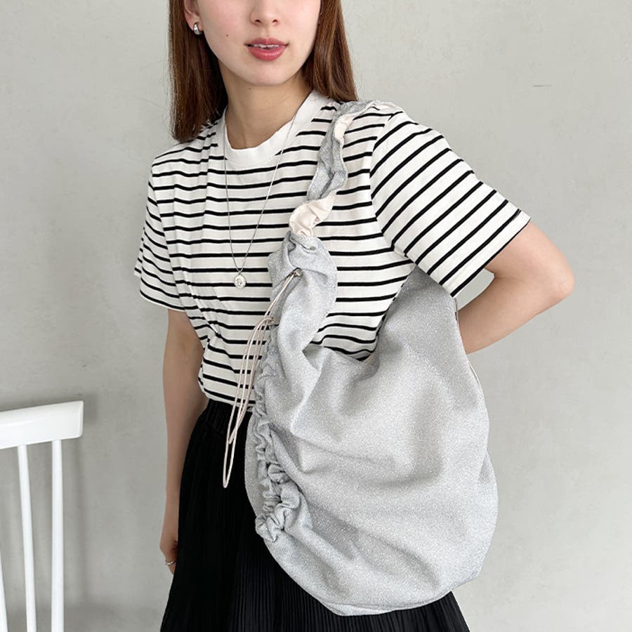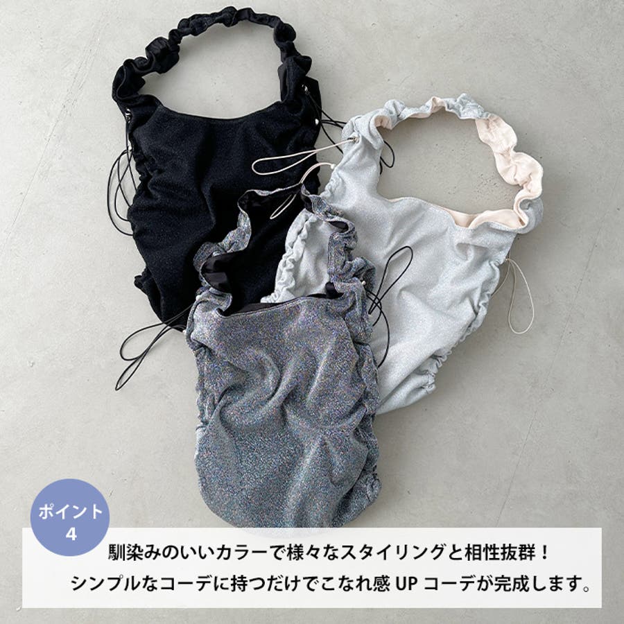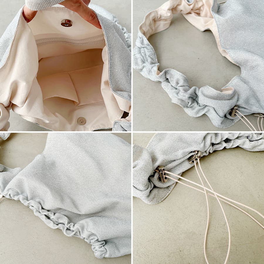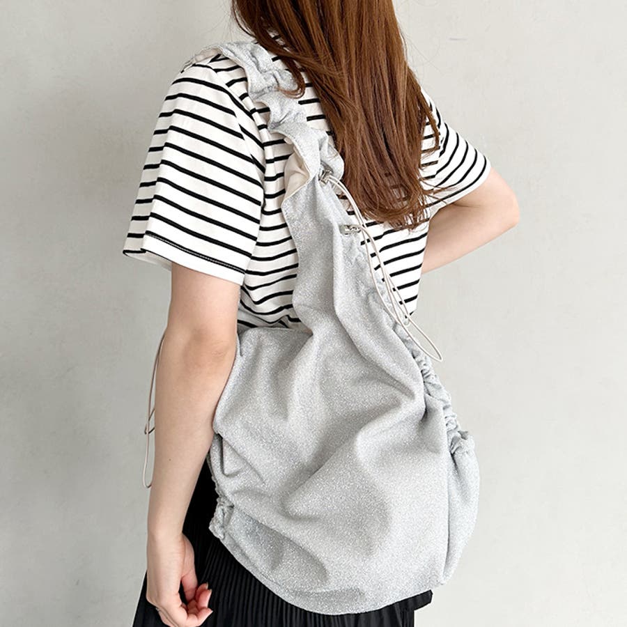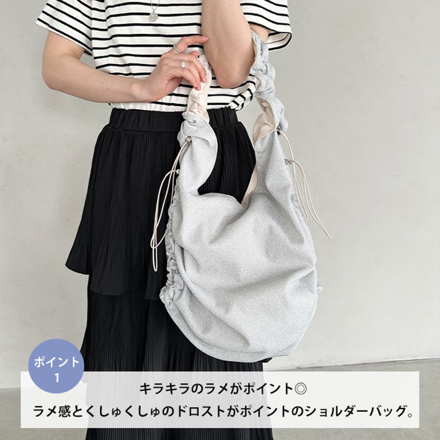ラメ感とくしゅくしゅのドロストがポイントのショルダーバッグ。