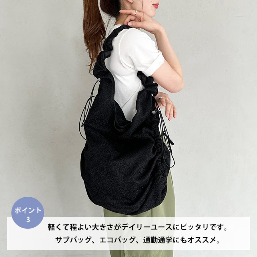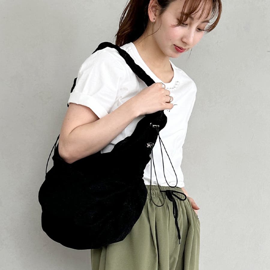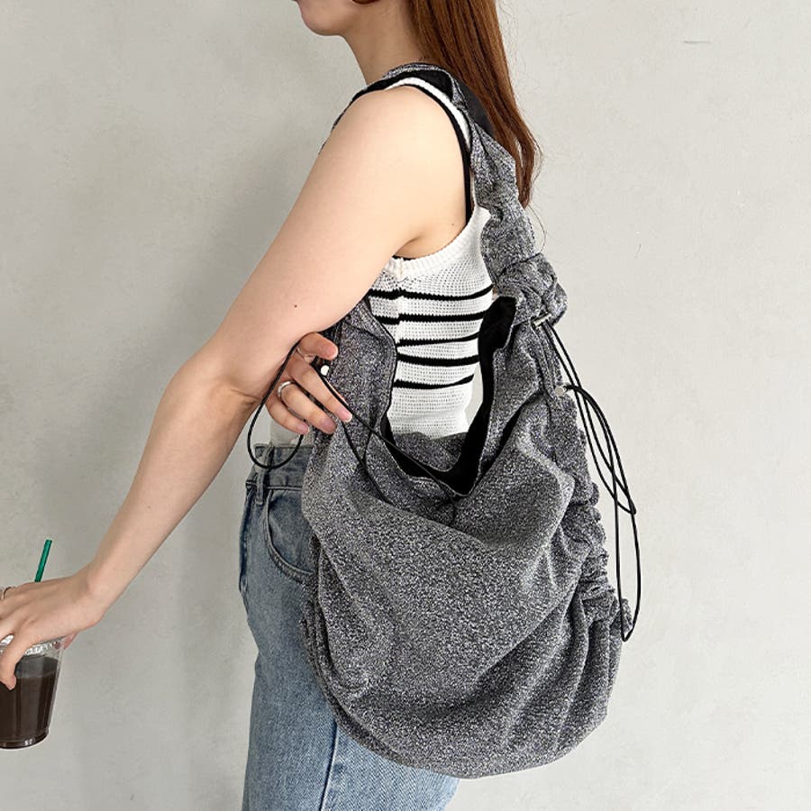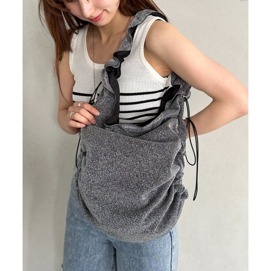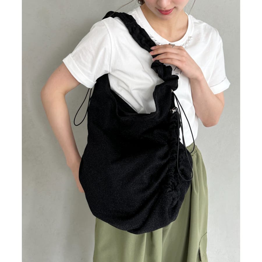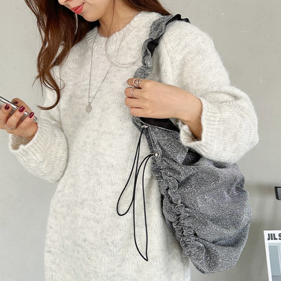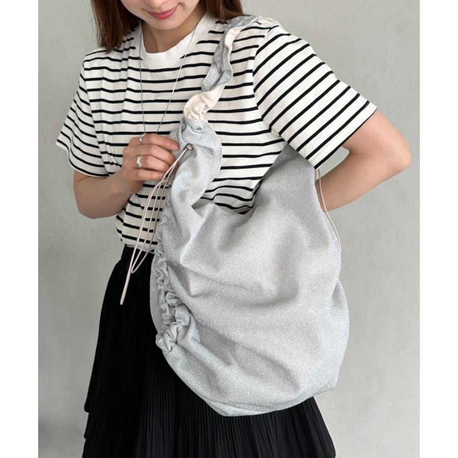 ラメ感とくしゅくしゅのドロストがポイントのショルダーバッグ。