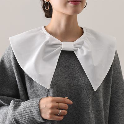 前後2way コットン リボン ビックカラー つけ襟 付け襟 レディース 無地 綿 天然素材 ナチュラル レイヤード風 重ね着風 春夏 付け衿 つけ衿 可愛い かわいい レトロ おしゃれ 雑貨 小物