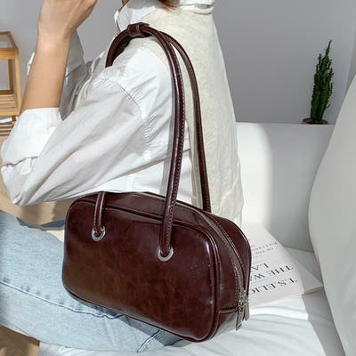 ●雰囲気のあるフェイクレザーワイドハンドバッグ