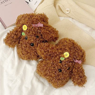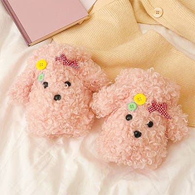 犬デザインボタン&リボン付きもこもこボアハンドウォーマー レディース ハンドウォーマー ショート アームウォーマー 手袋 暖かい 指なし 手首 スマホ手袋 秋冬 防寒 寒さ対策 おしゃれ 動物 アニマル 犬