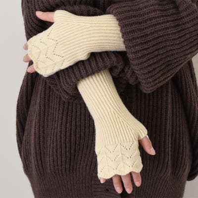 ナチュラルな雰囲気のスカラップ編みハンドウォーマー
