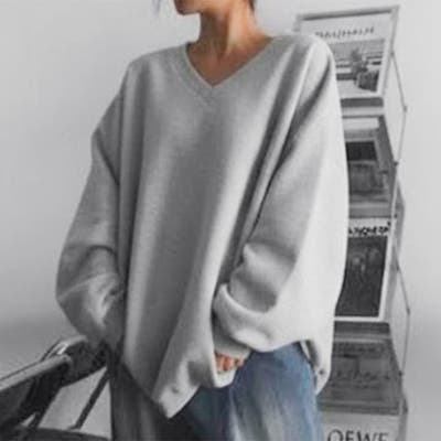 ゆるっとラフに着られるVネックコットンカットソー