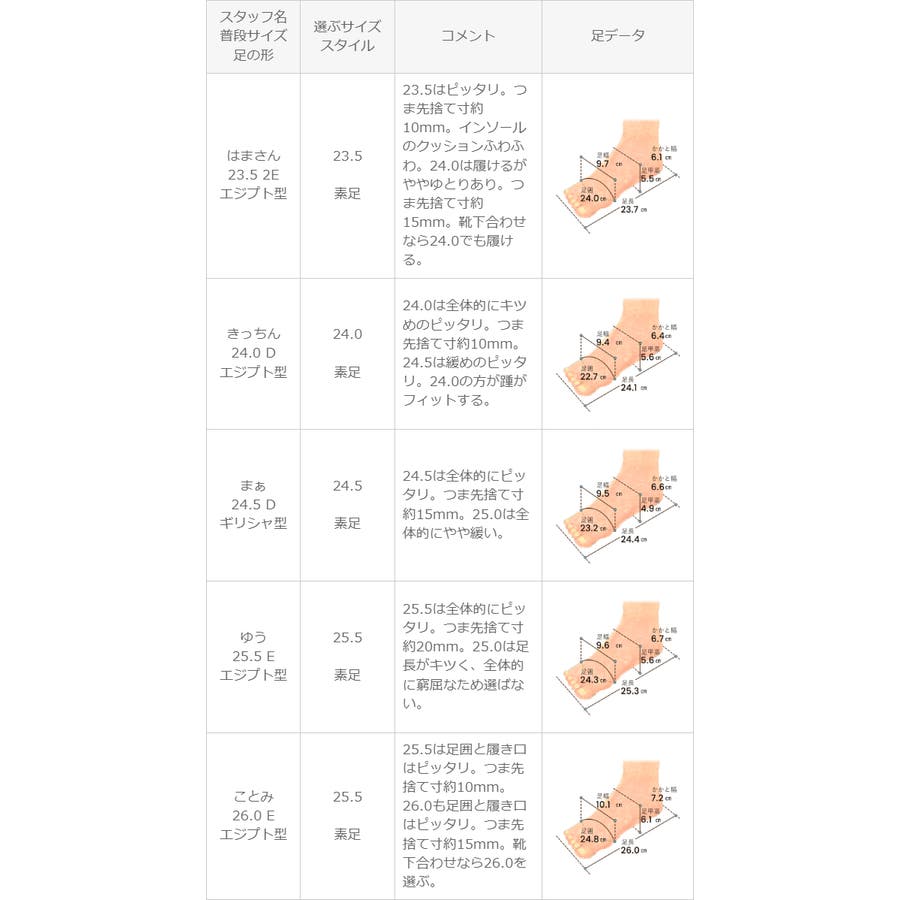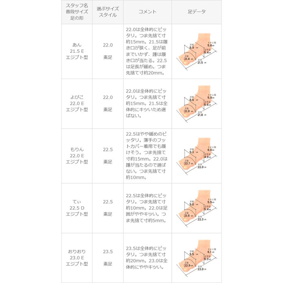 ※足の形には個人差があります。スタッフ試着感想は参考程度にお考え下さい。