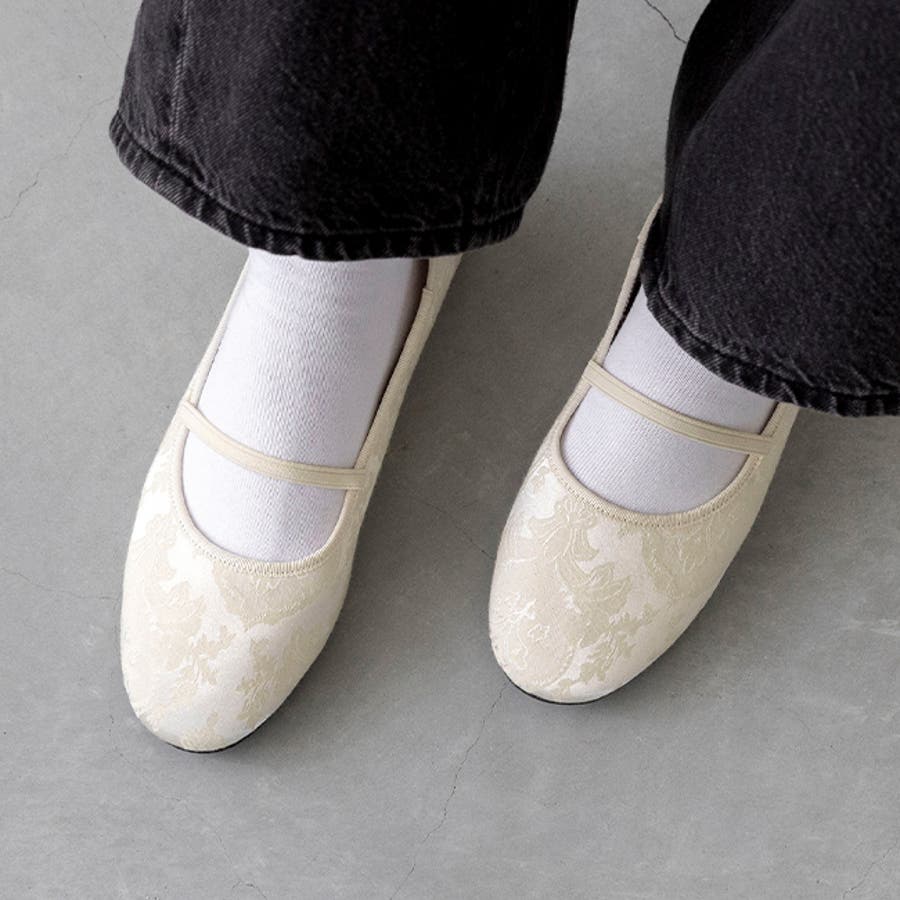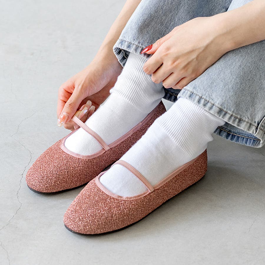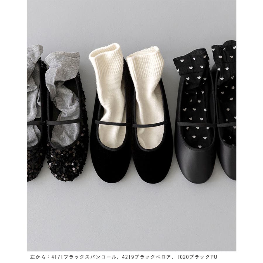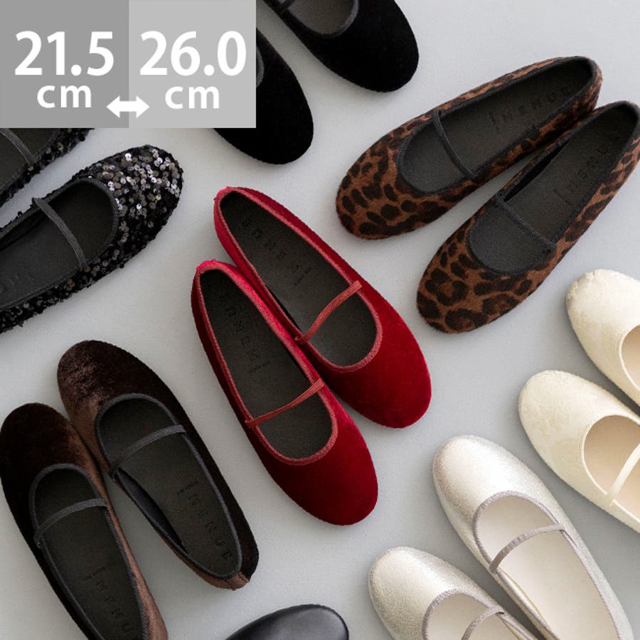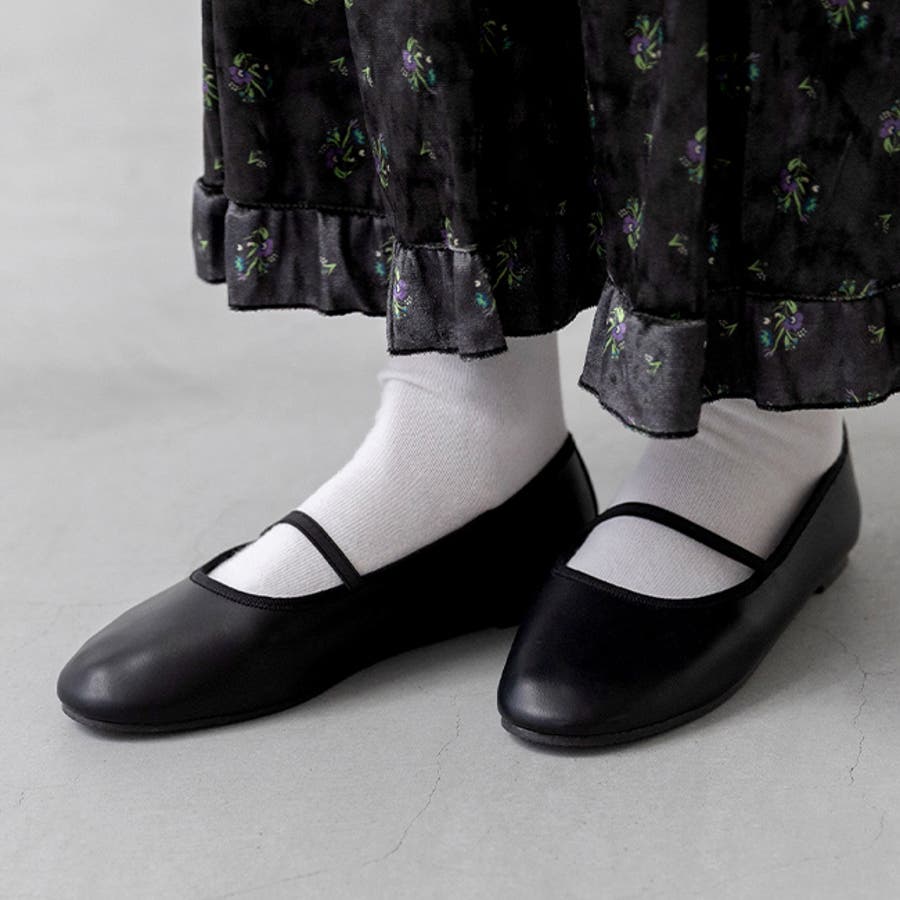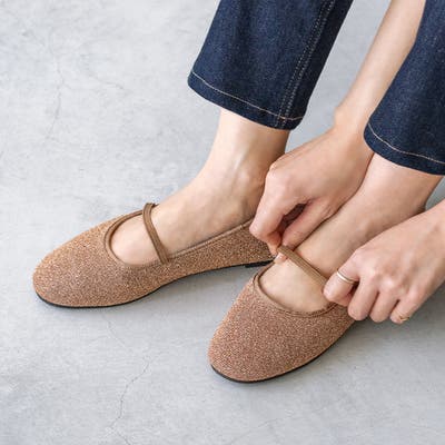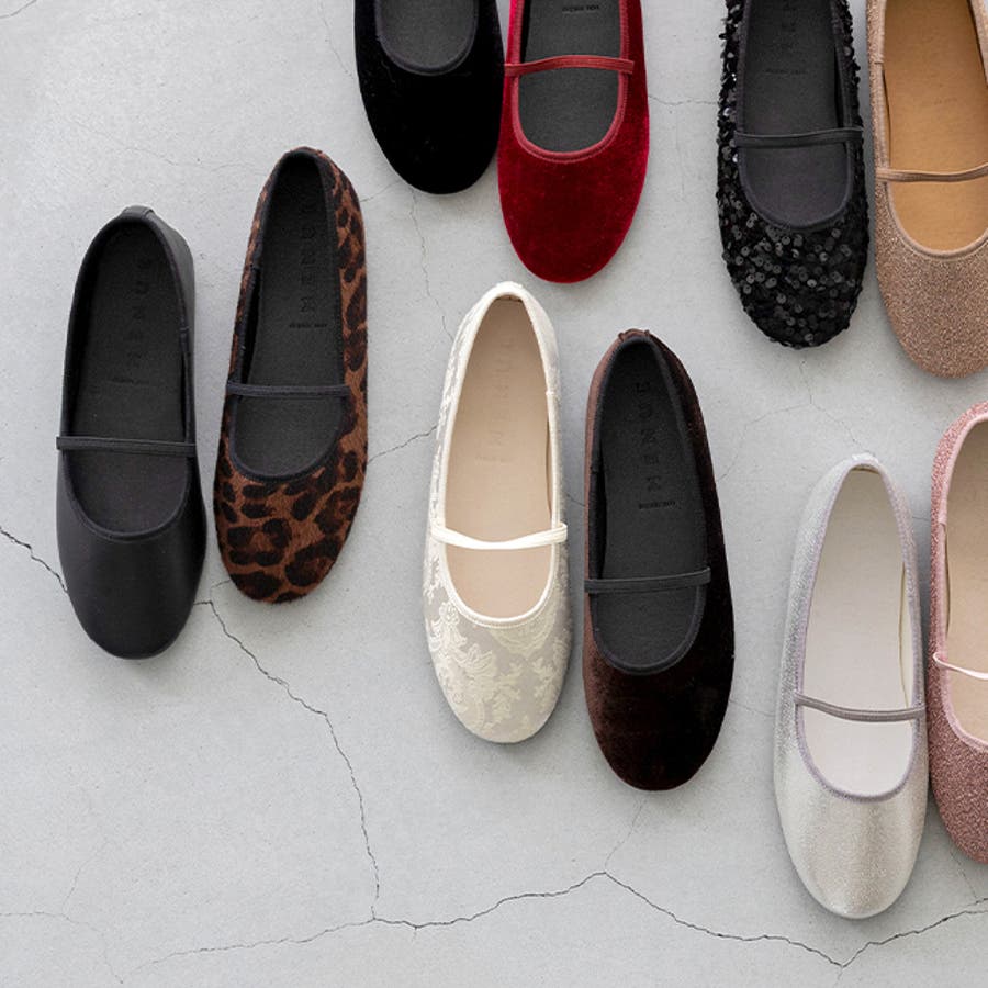 トレンドカラーをちりばめた、さっと履けて可愛いストラップ付バレエシューズ。