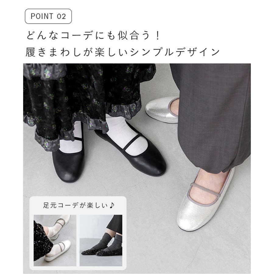 ほどよい丸みのラウンドトゥに細身のストラップで、甘すぎずかっちりしすぎないから使いやすさも◎