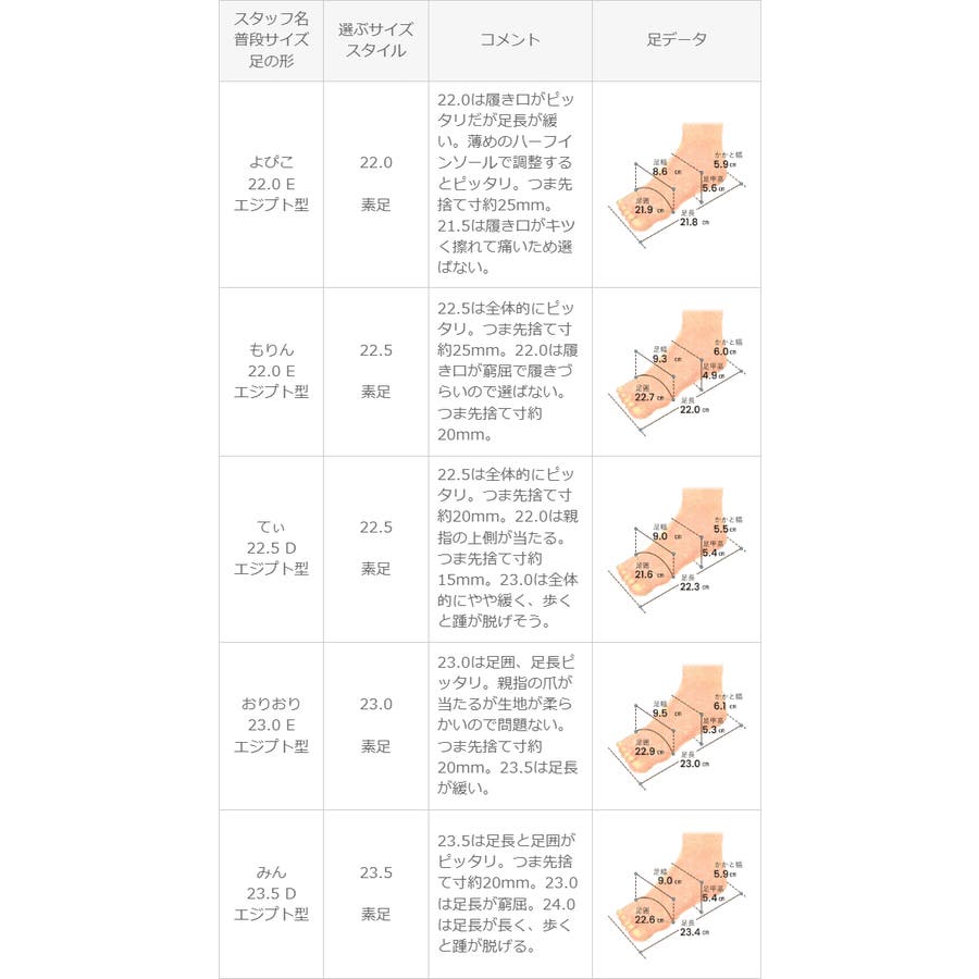 ※足の形には個人差があります。スタッフ試着感想は参考程度にお考え下さい。