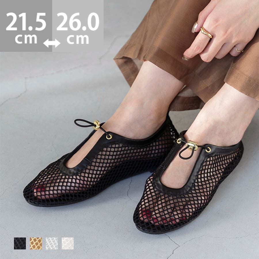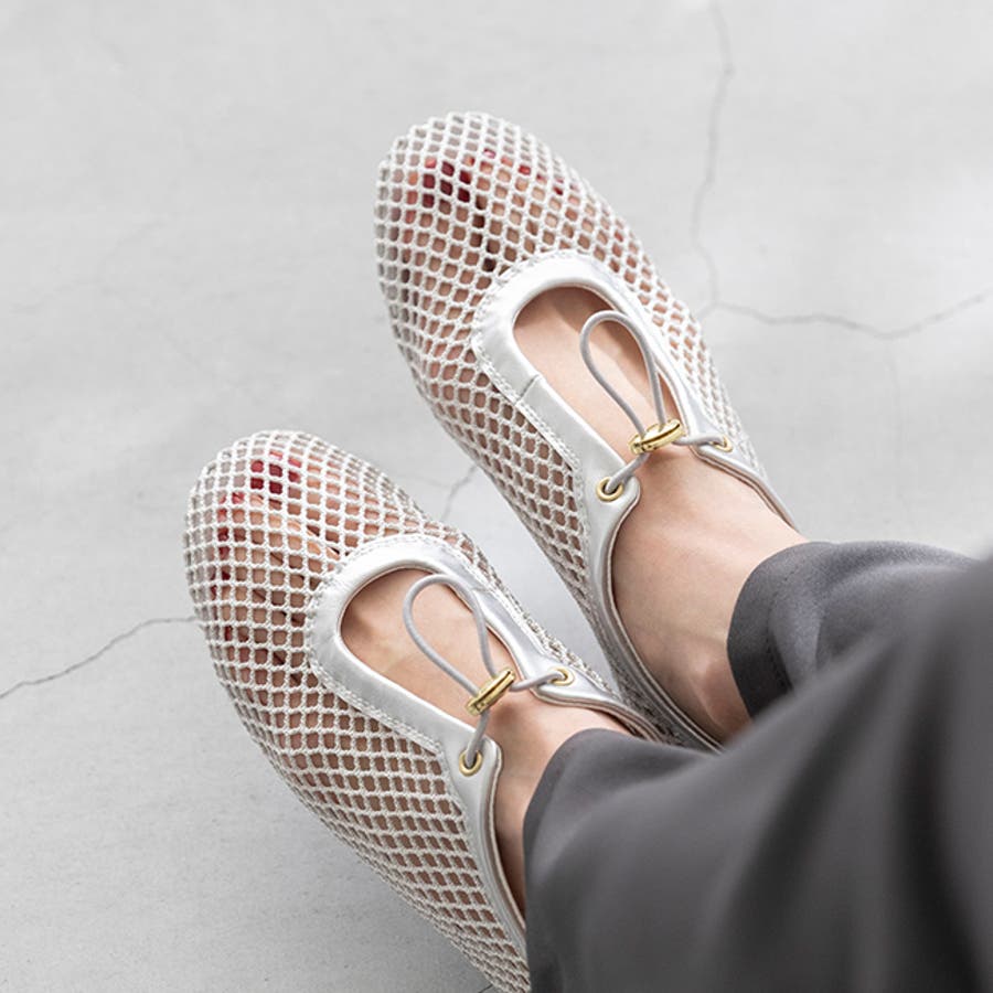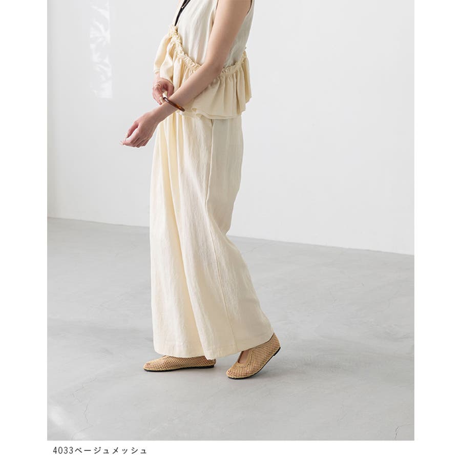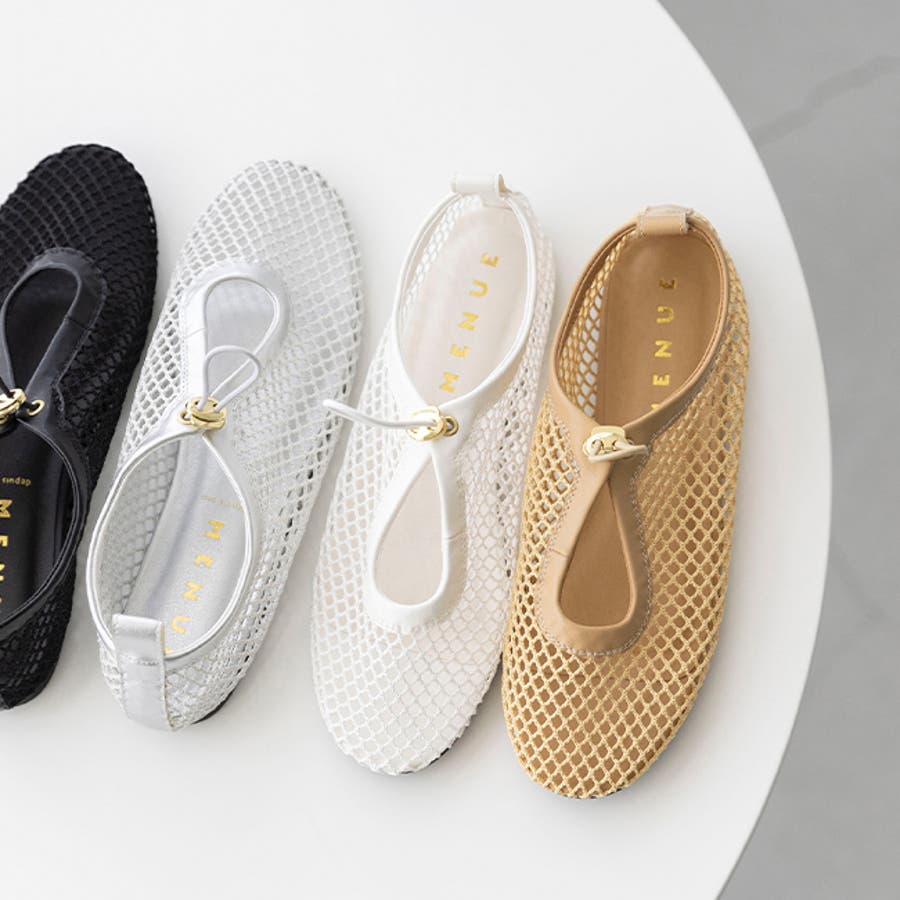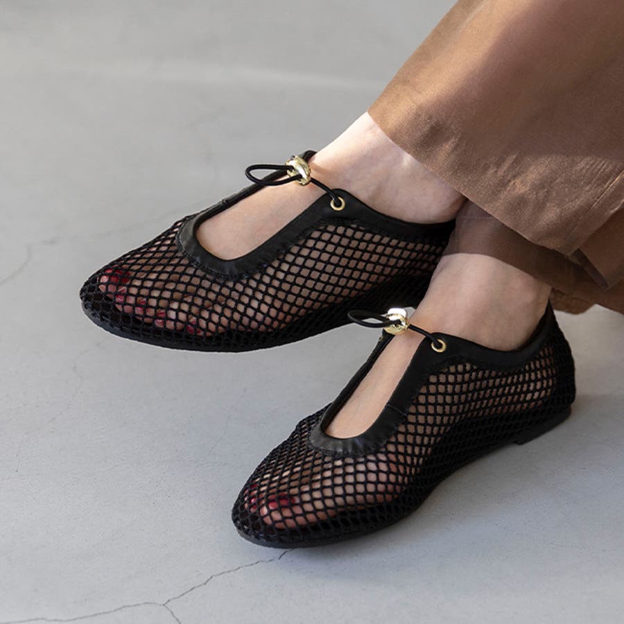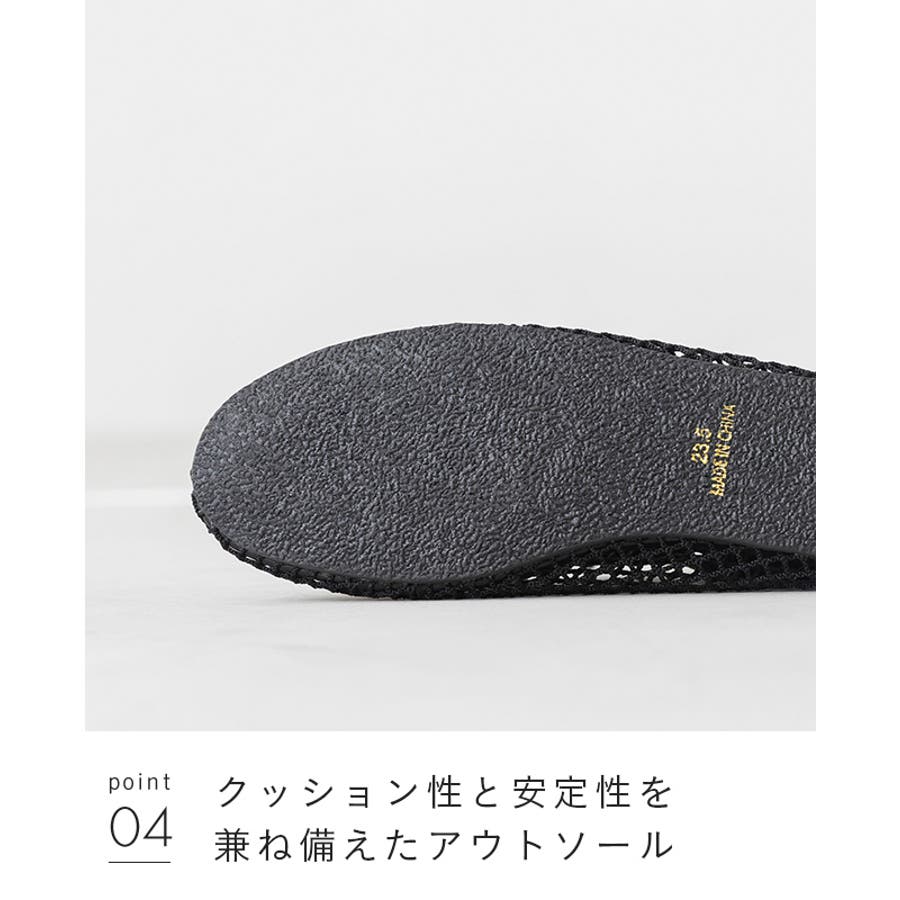 涼しさと抜け感を兼ね備えたメッシュフラットパンプスは、素足で履いても快適な通気性に優れた履き心地。