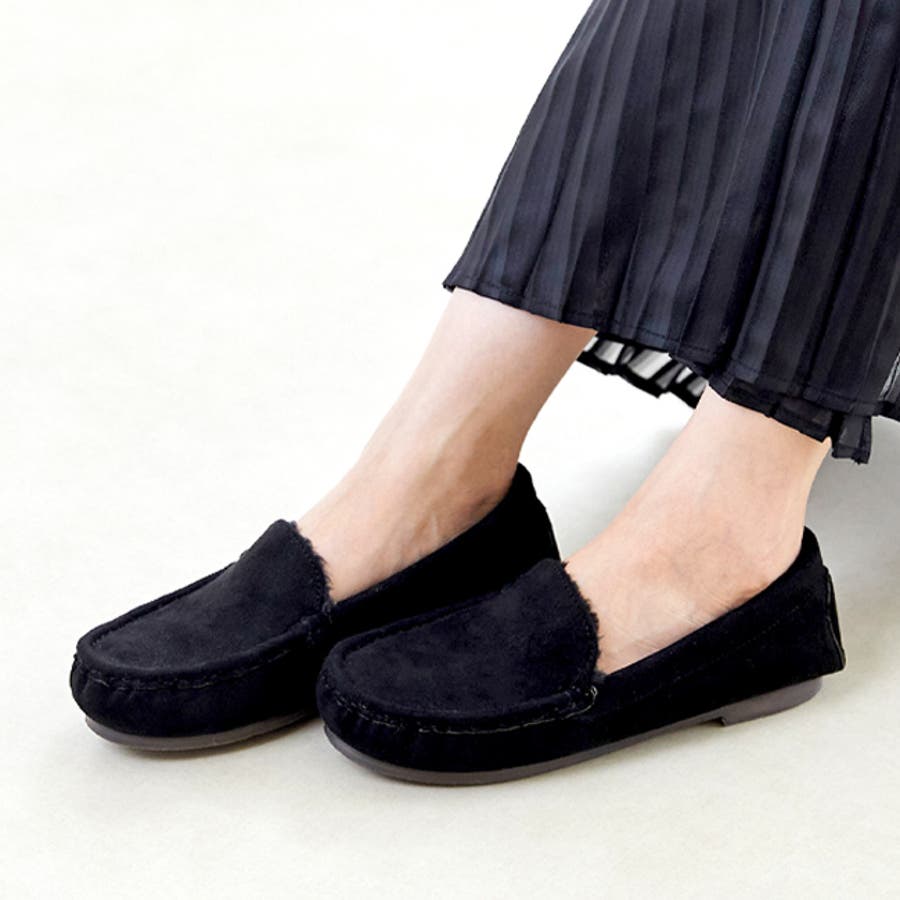 シンプルなデザインが秋冬コーデを軽やかに仕上げるファーモカシン。