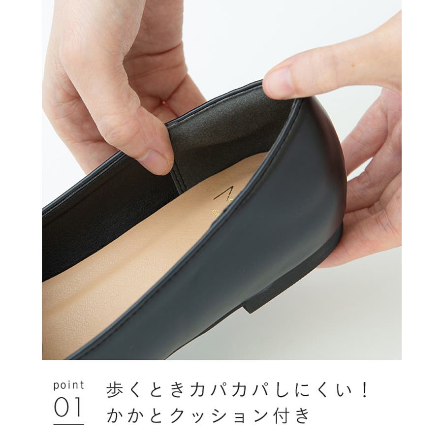 歩くときのプチストレス「かかとの脱げ」を防止するために、何度も素材、形、厚みなどを調整し、脱げにくいように仕上げたかかとクッション付きです。