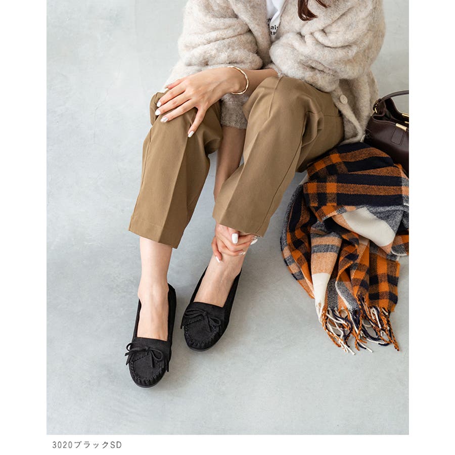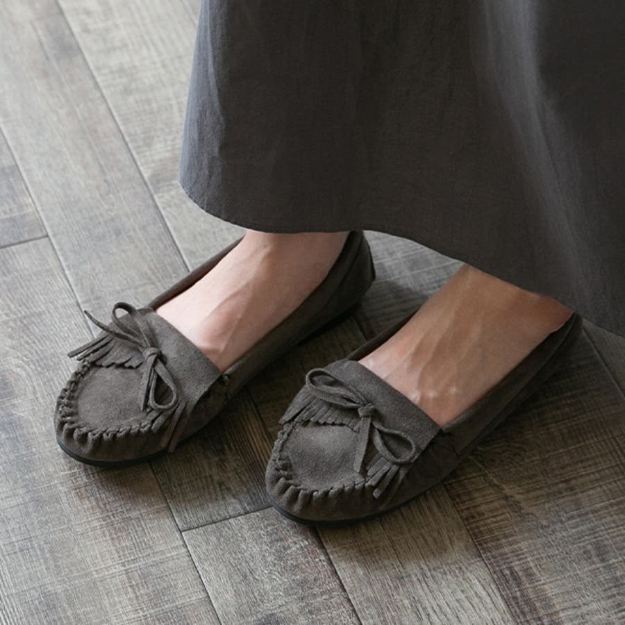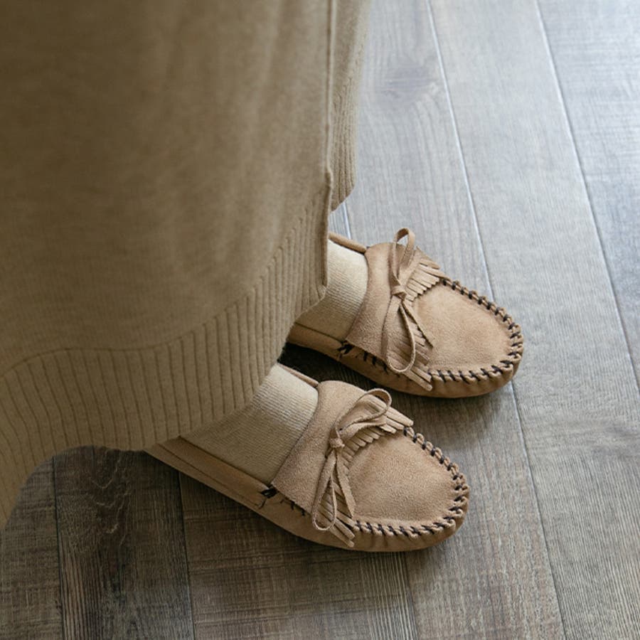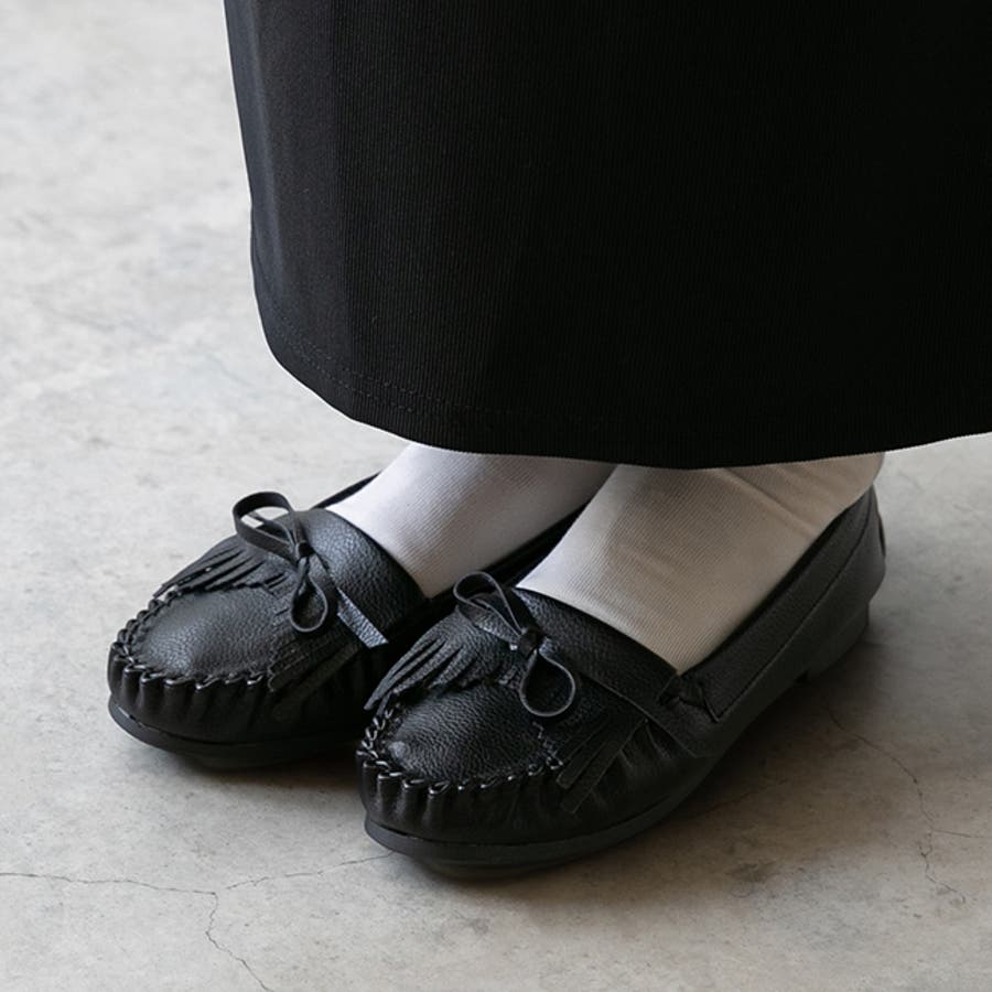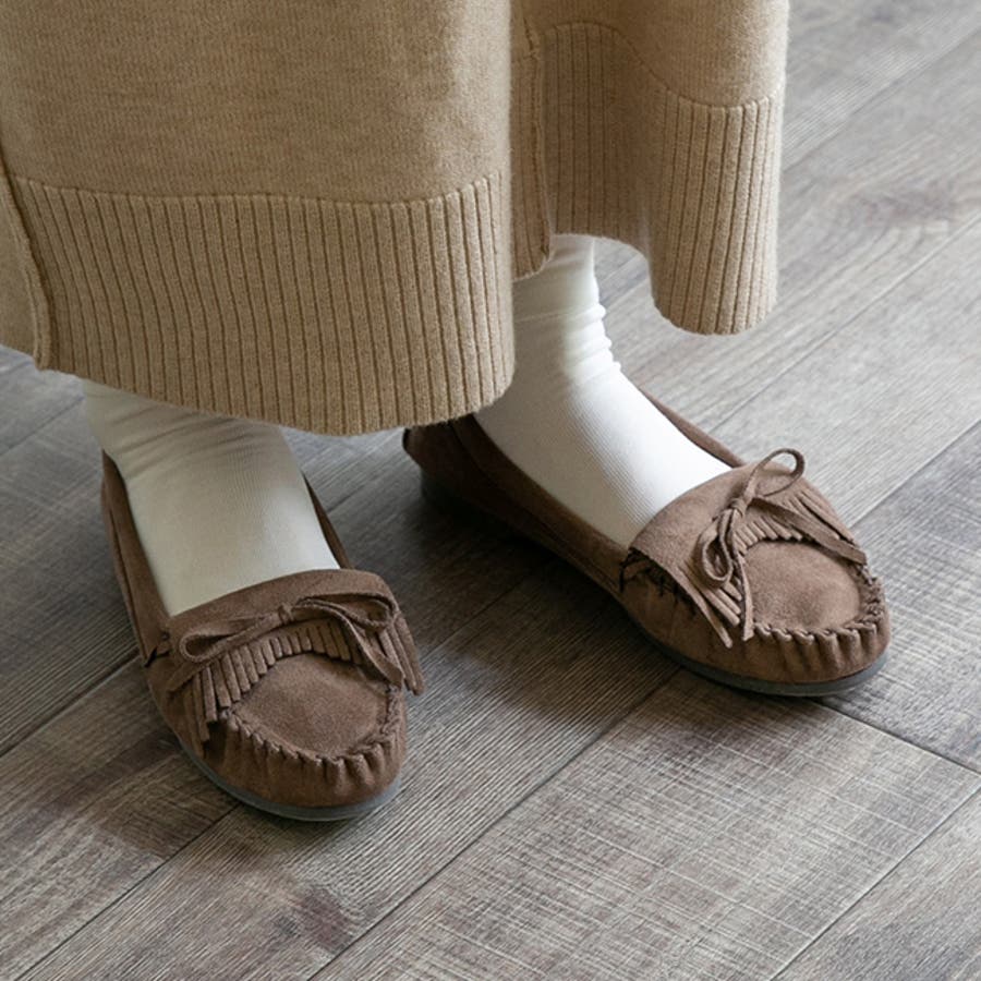 シンプルなデザインが秋冬コーデを軽やかに仕上げるモカシン。