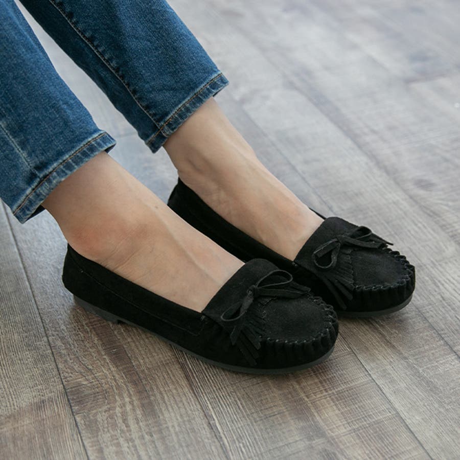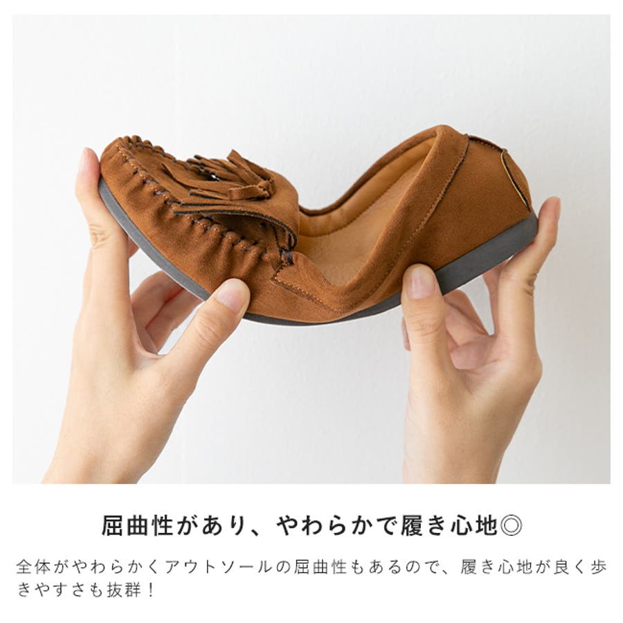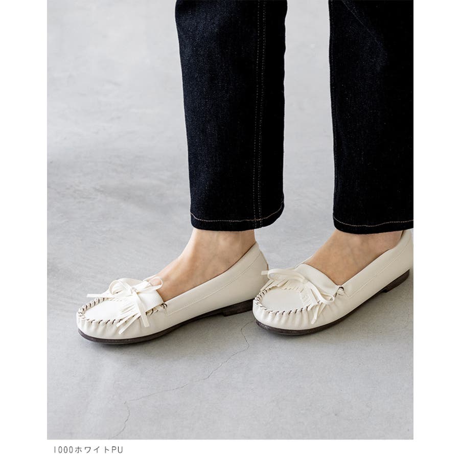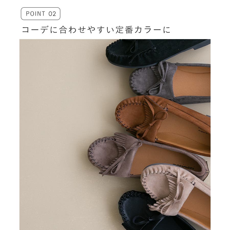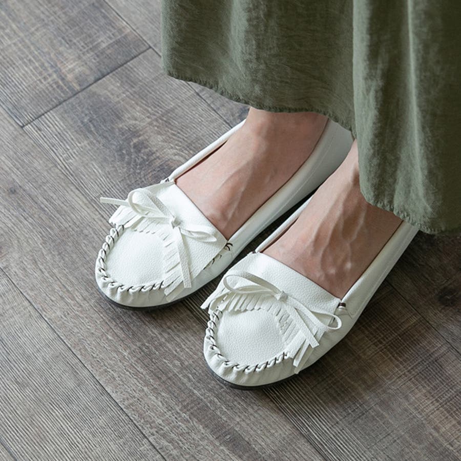 シンプルなデザインが秋冬コーデを軽やかに仕上げるモカシン。