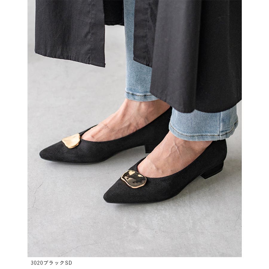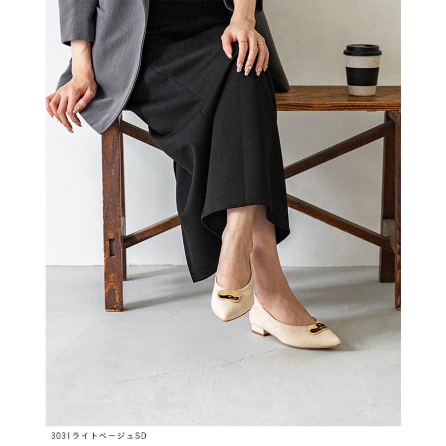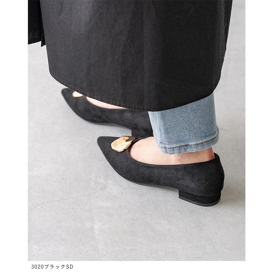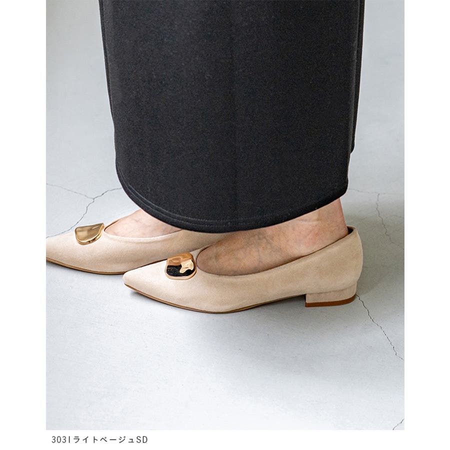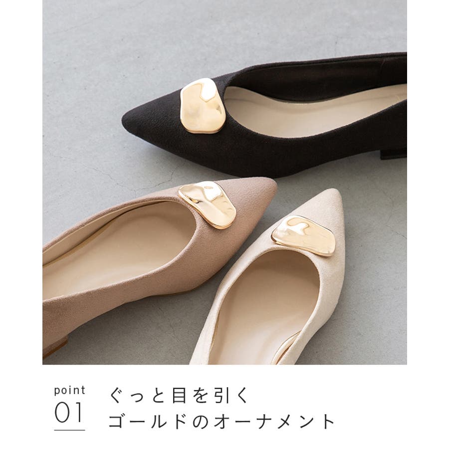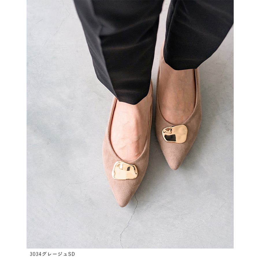 ポインテッドトゥ×ゴールドのオーナメントで一気に大人の女性らしさをアップ。