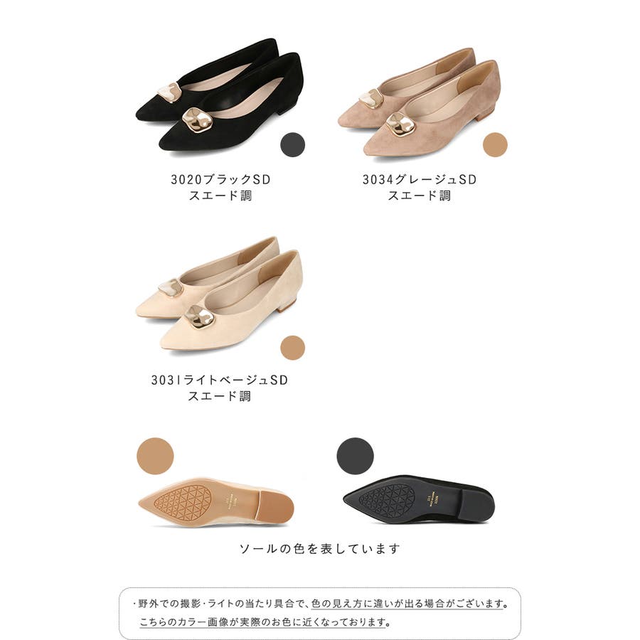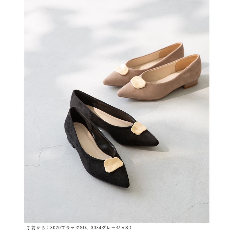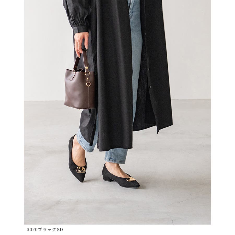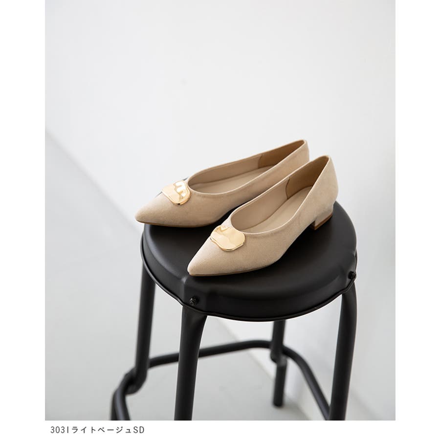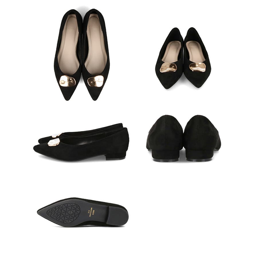 ポインテッドトゥ×ゴールドのオーナメントで一気に大人の女性らしさをアップ。