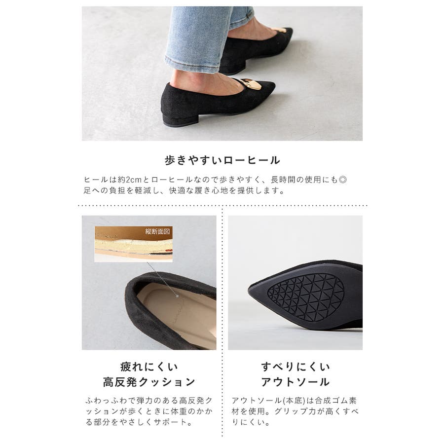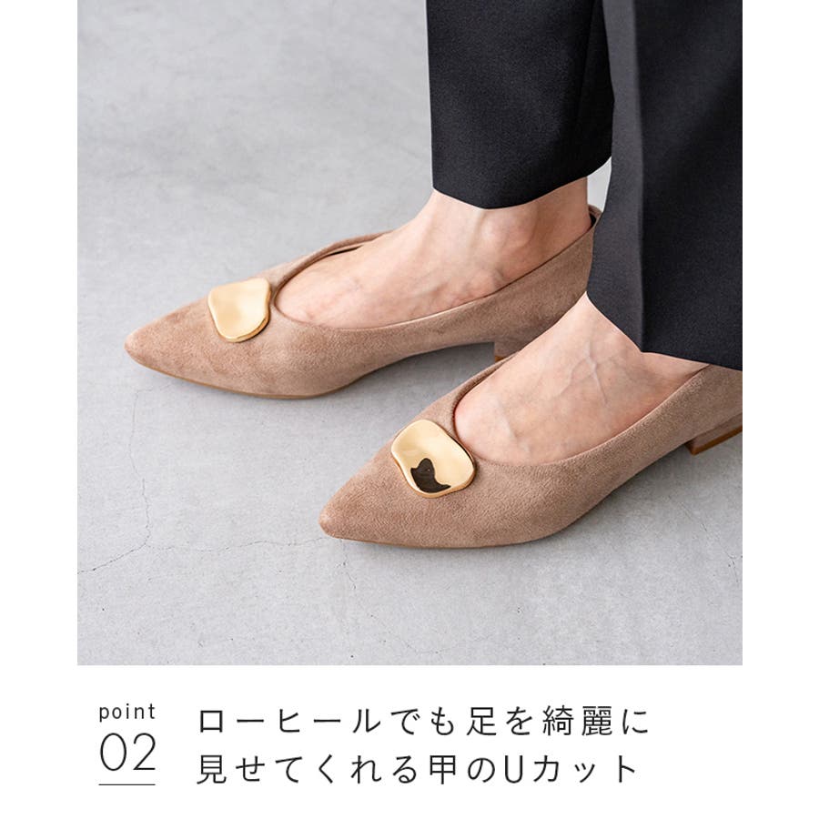 ローヒールでありながら、甲のUカットが足を美しく引き立ててくれます。