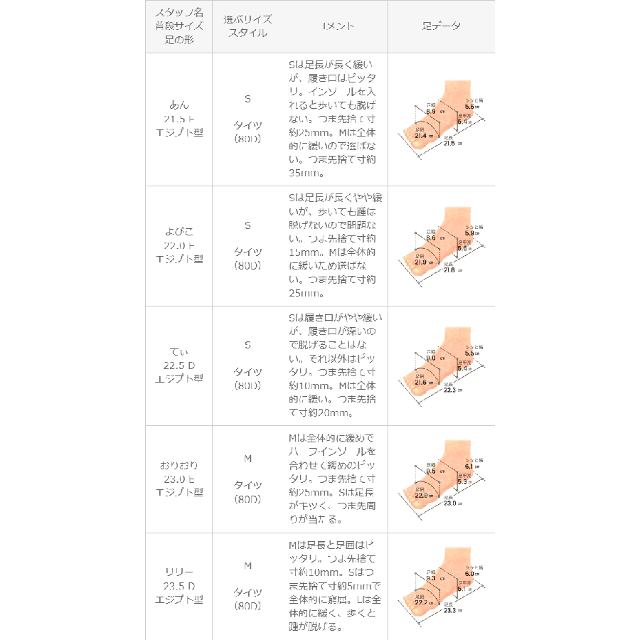 ※足の形には個人差があります。スタッフ試着感想は参考程度にお考え下さい。