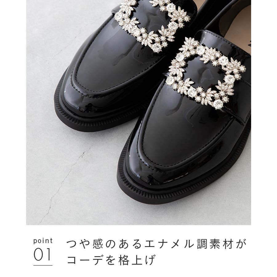 シンプルな形のローファーに存在感のある装飾が目を惹くアイテム。