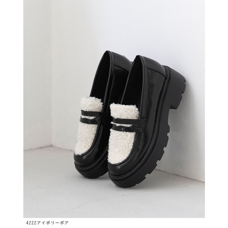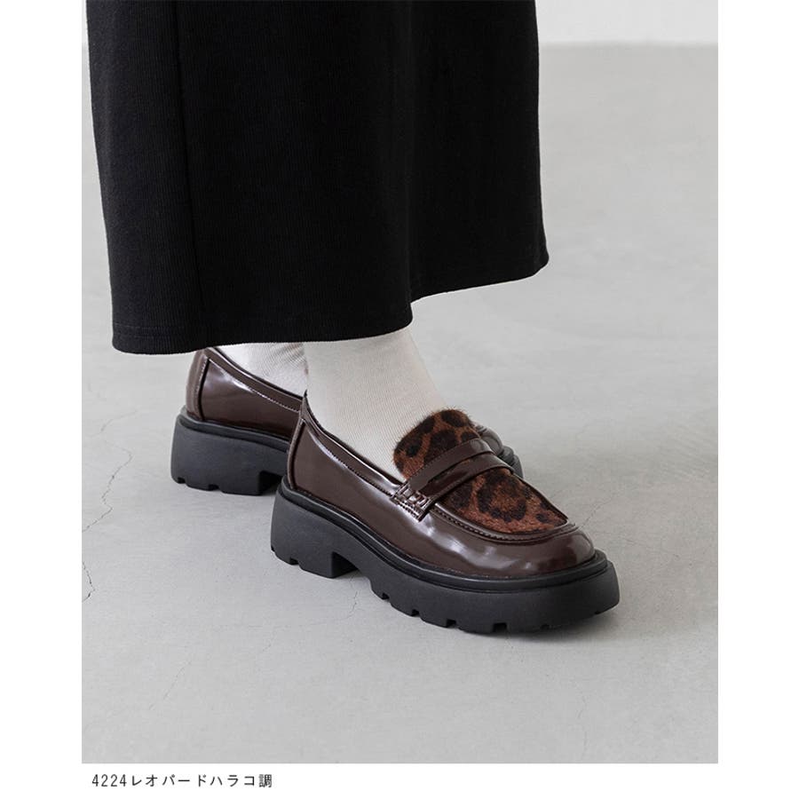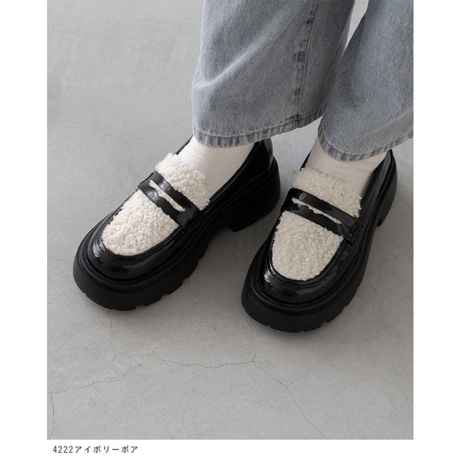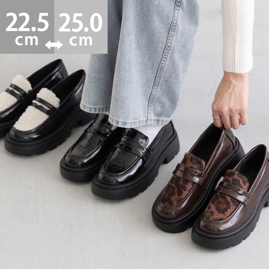 定番のコインローファーに、暖かなボア素材や旬のレオパード柄をあしらい、足元からトレンド感を演出。