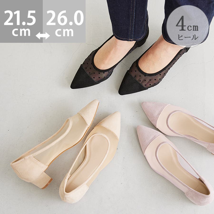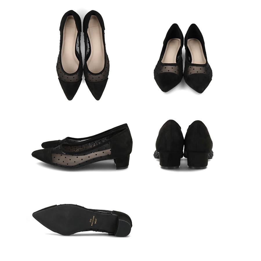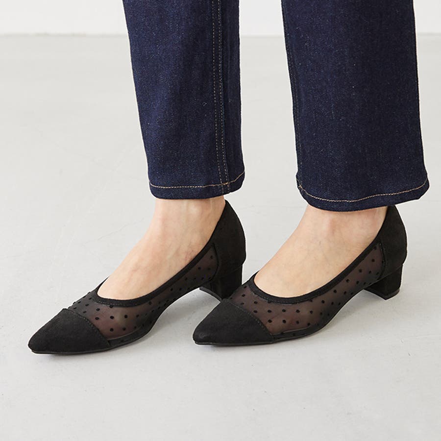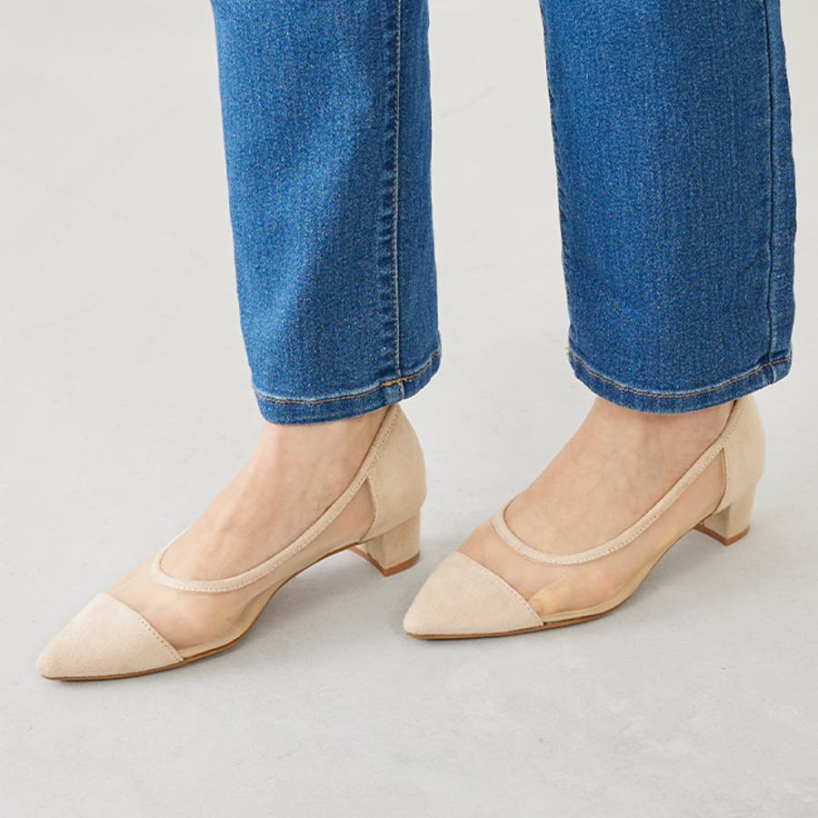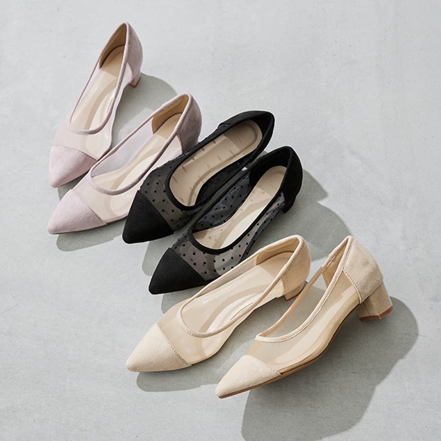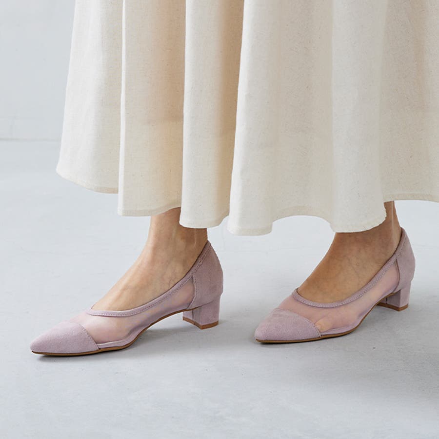透け感が涼しげでフェミニンなポインテッドトゥパンプス