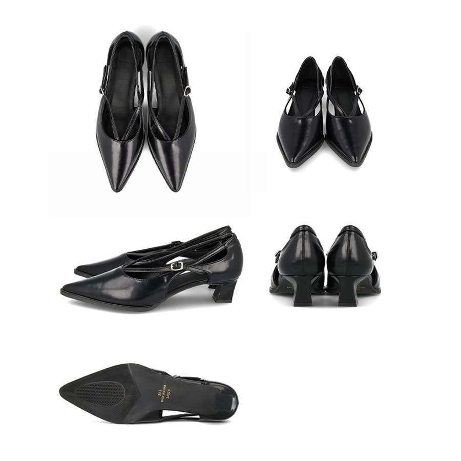 シャープなポインテッドトゥにトレンドのコバが特徴的な旬シルエット。