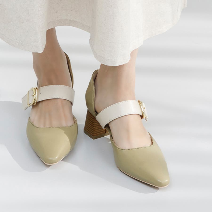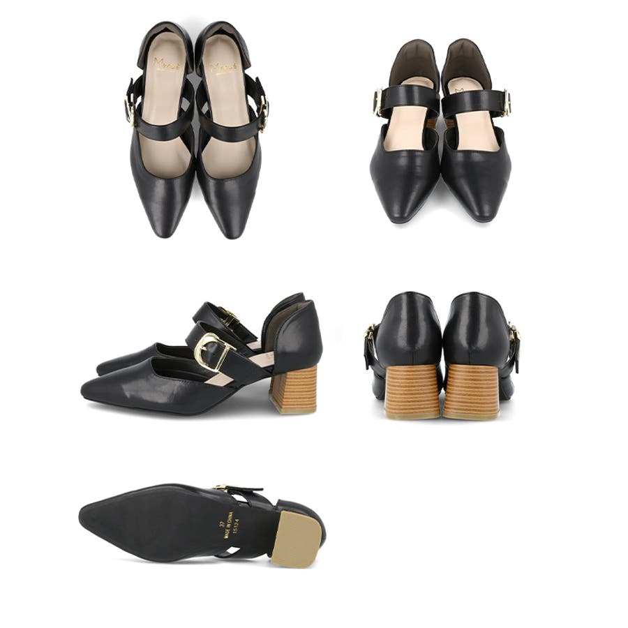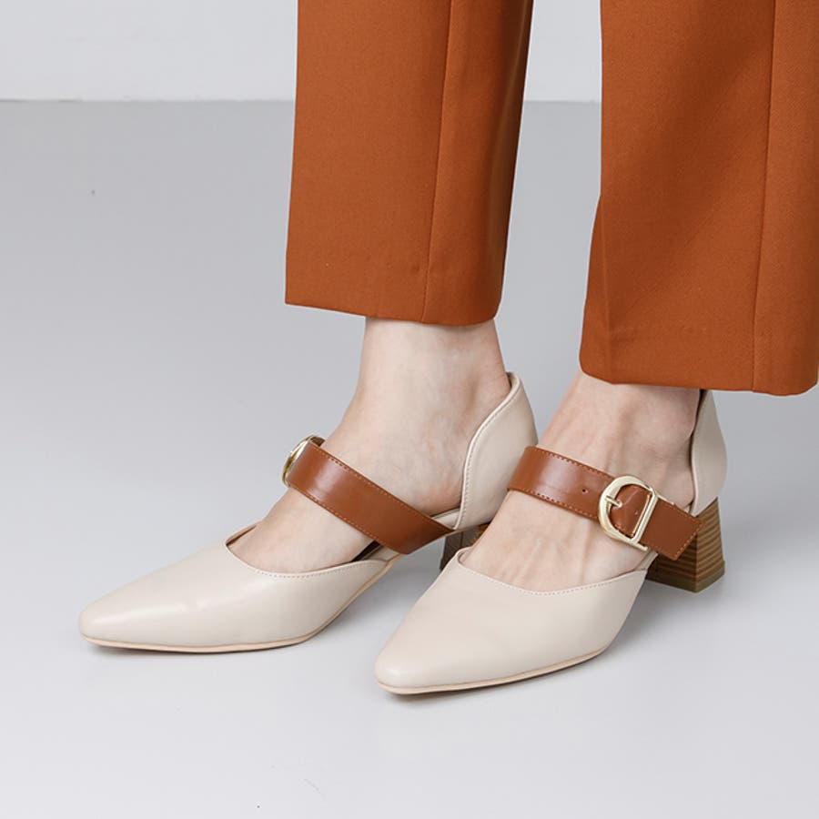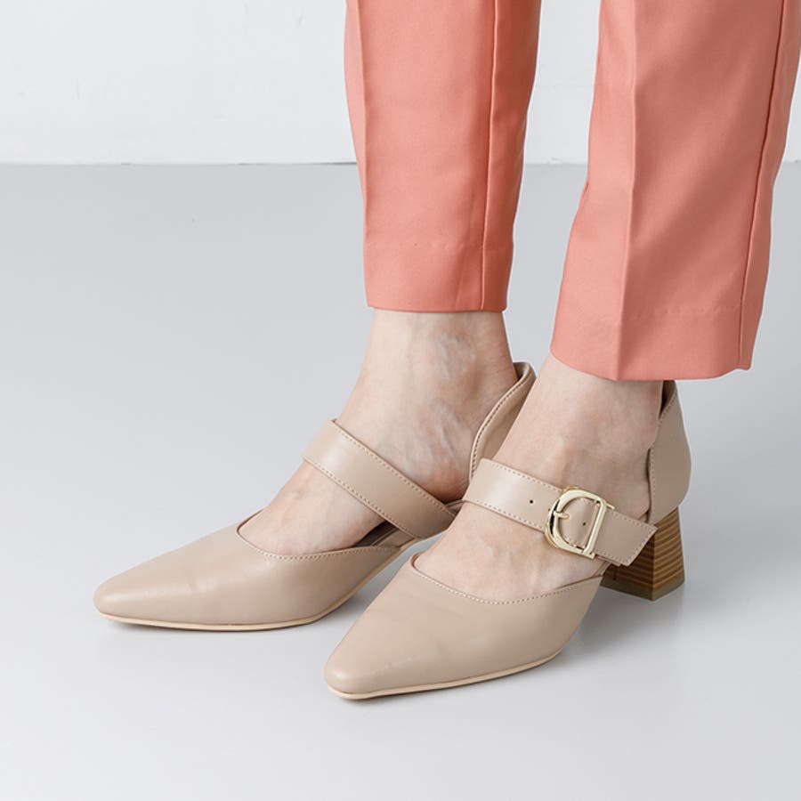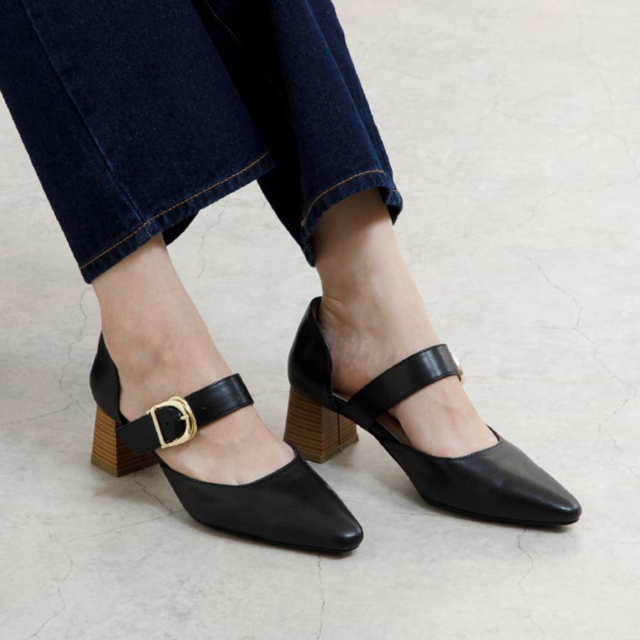 すっきりとした細身のスクエアトゥで、女性らしく抜け感のあるデザイン。