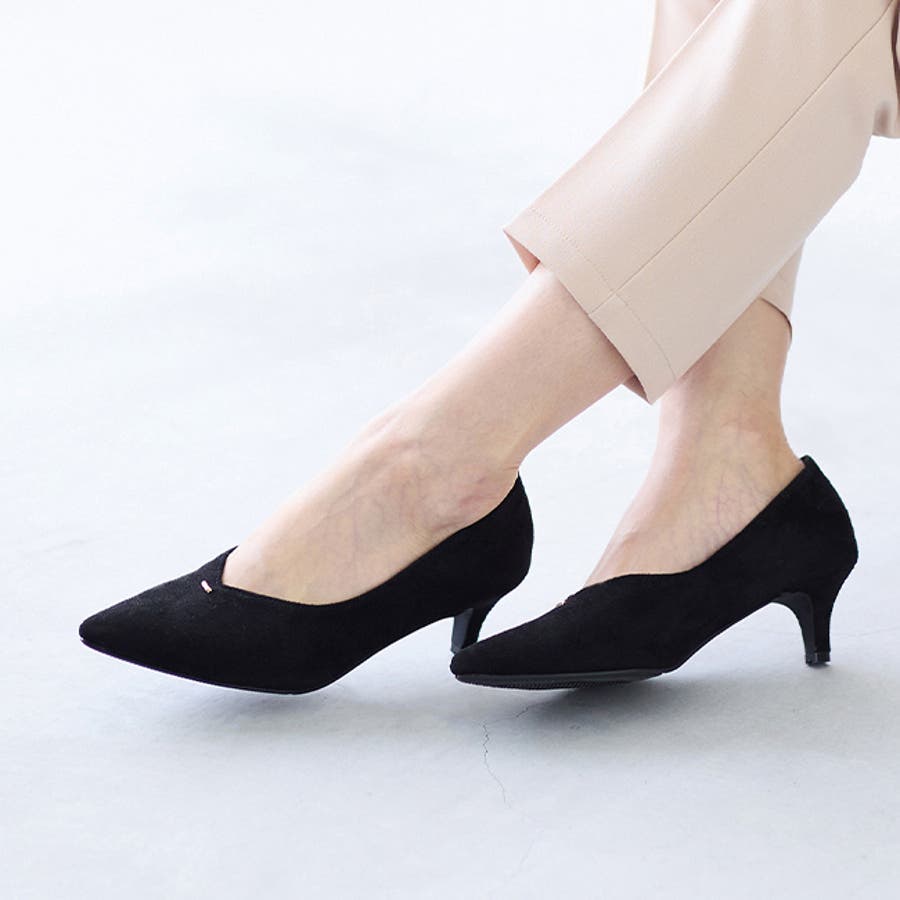 5cmの細いヒールが、エレガントなシルエットを作り出してくれます。さらに、履き口のVカットが足首を美しく見せ、大人の女性らしい上品な印象を演出!
