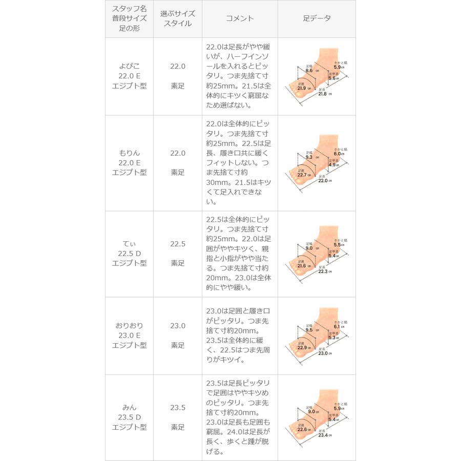 ※足の形には個人差があります。スタッフ試着感想は参考程度にお考え下さい。