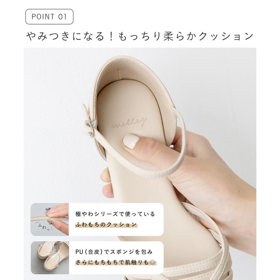 さらに肌触りの良いPU(合成皮革)をプラスすることで、素足が触れた瞬間もっちりとやみつきになる心地よさが足を包みます。