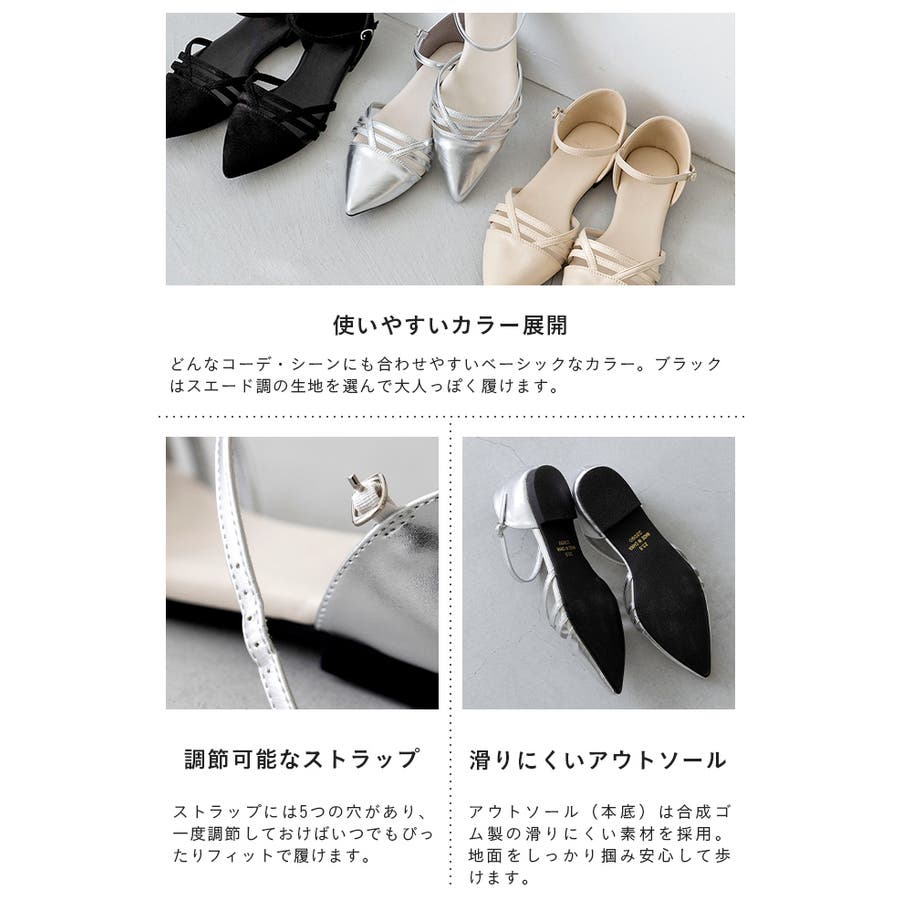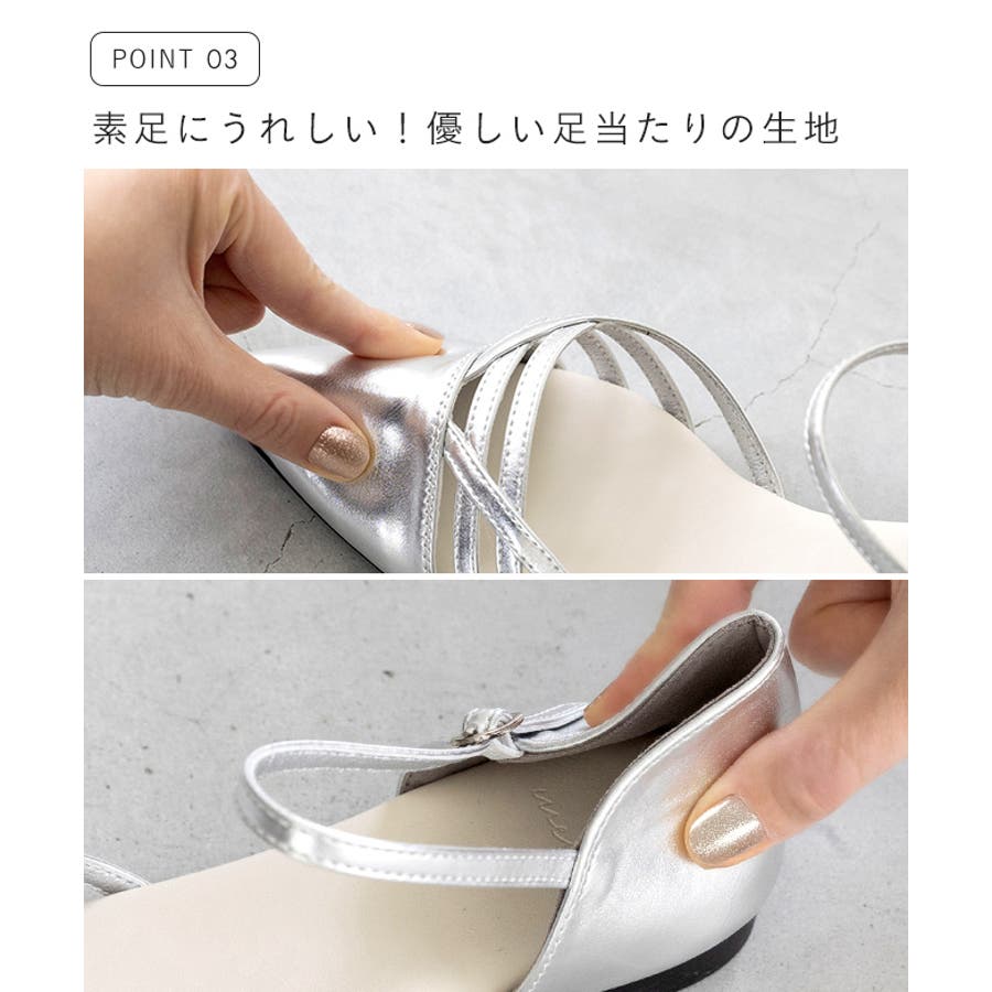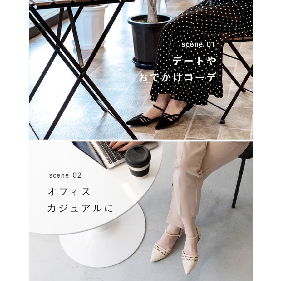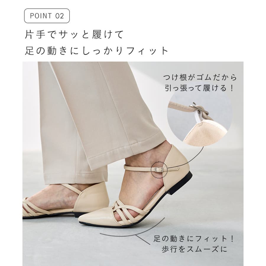 すらりとしたポインテッドトゥと甲の肌見せデザインはファッションのアクセントになり、上品でヘルシーな夏らしい涼しげな印象に。