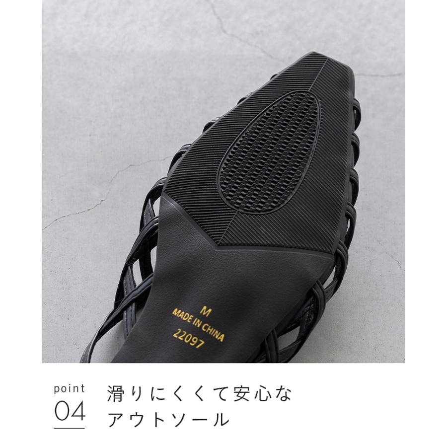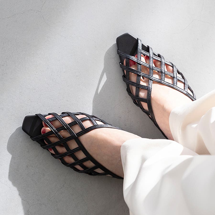 つま先は、シャープなラインが美しいスクエアトゥを採用。フラットに近い履き心地ながら、視線をスッと先へ流すことで、脚長効果を叶えました。