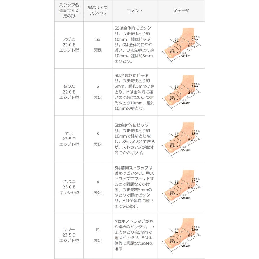 ※足の形には個人差があります。スタッフ試着感想は参考程度にお考え下さい。