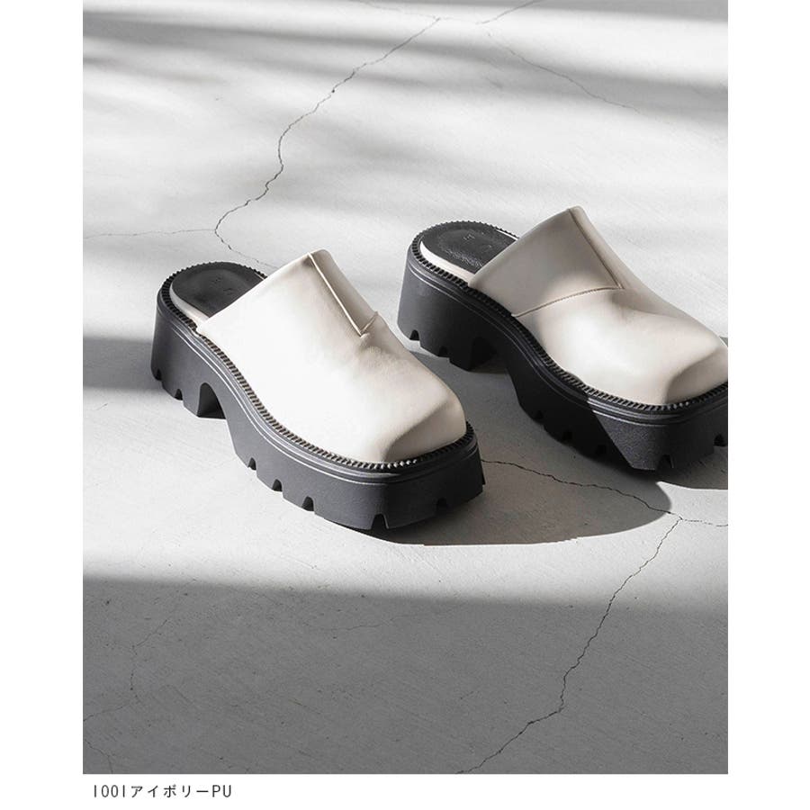 存在感のある厚底が目を惹くサボサンダル。