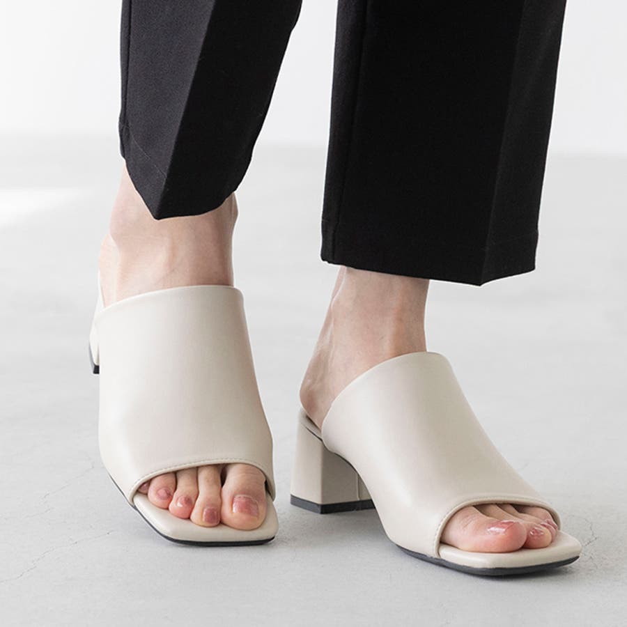 オフィスで履き替え スクエアトゥ ミュールサンダル