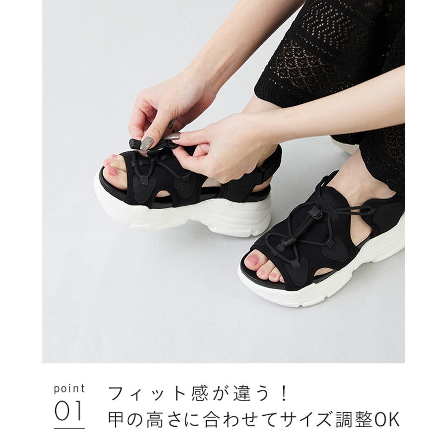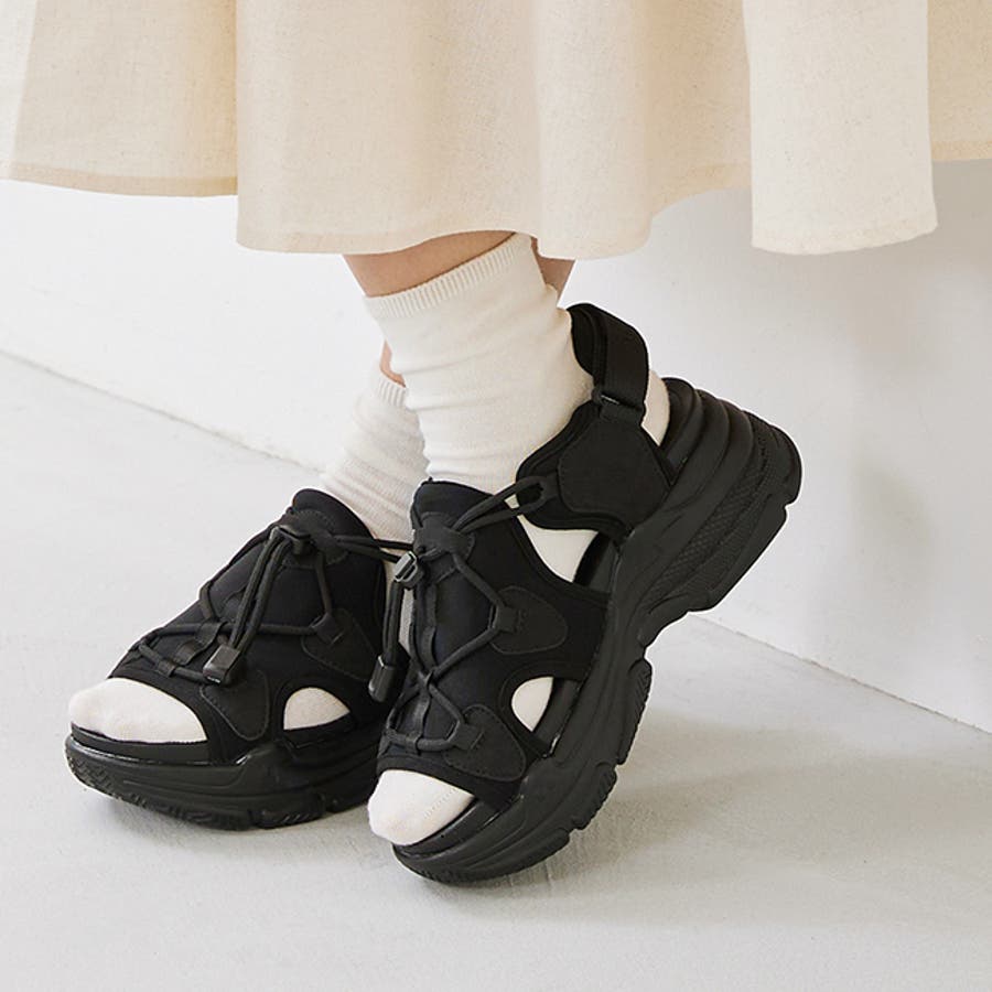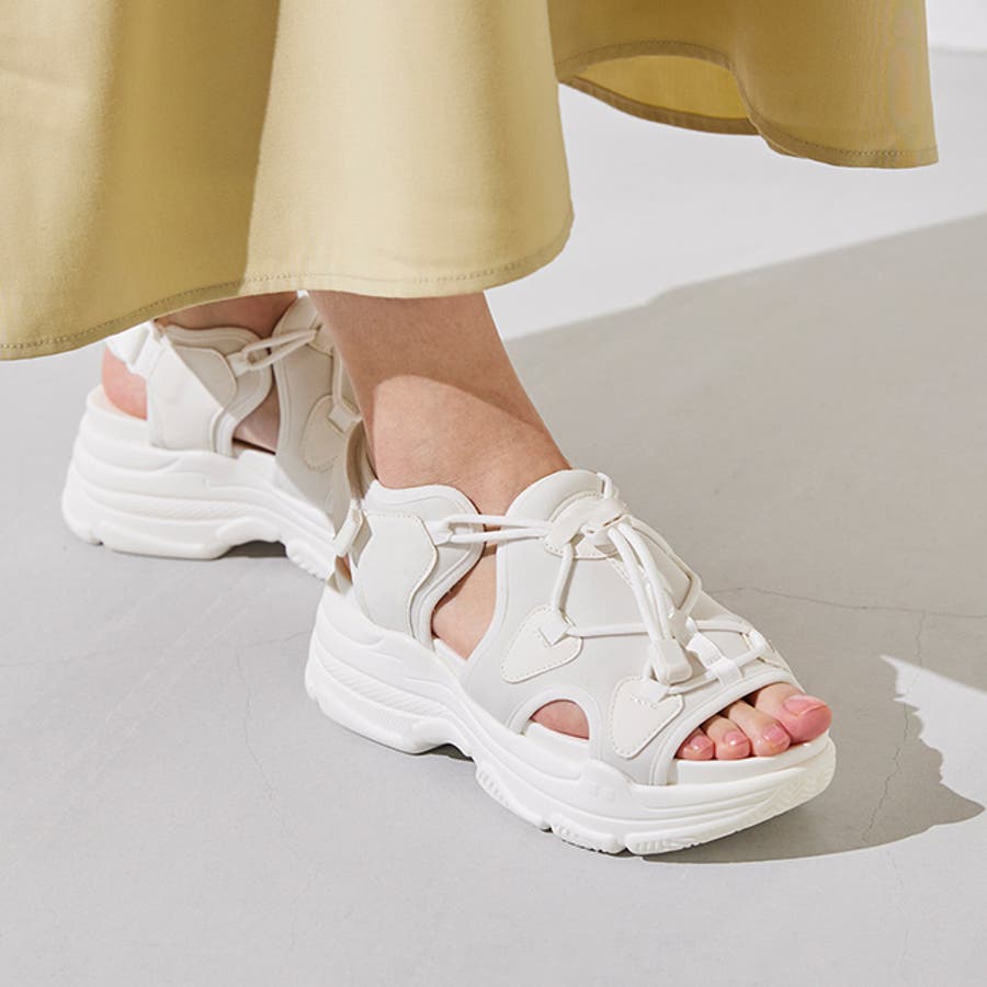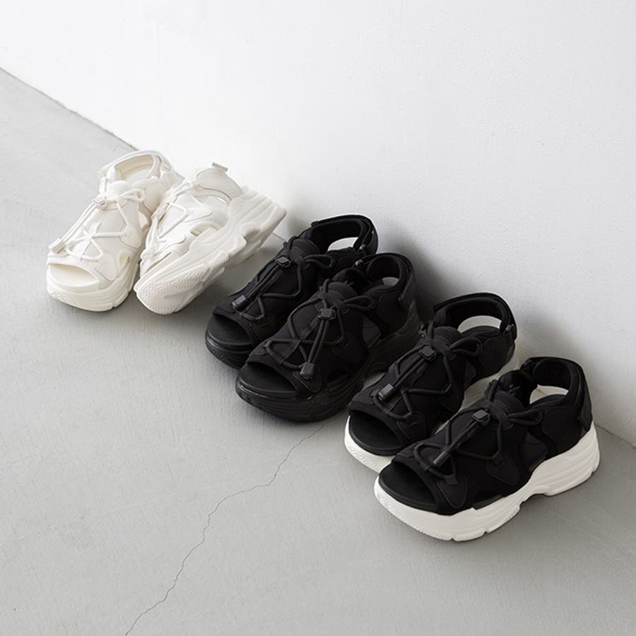 スニーカー好きの心もとらえるスポーティな厚底サンダル。
