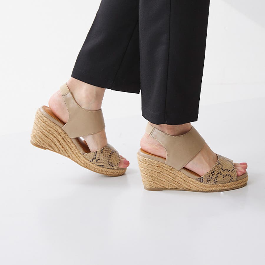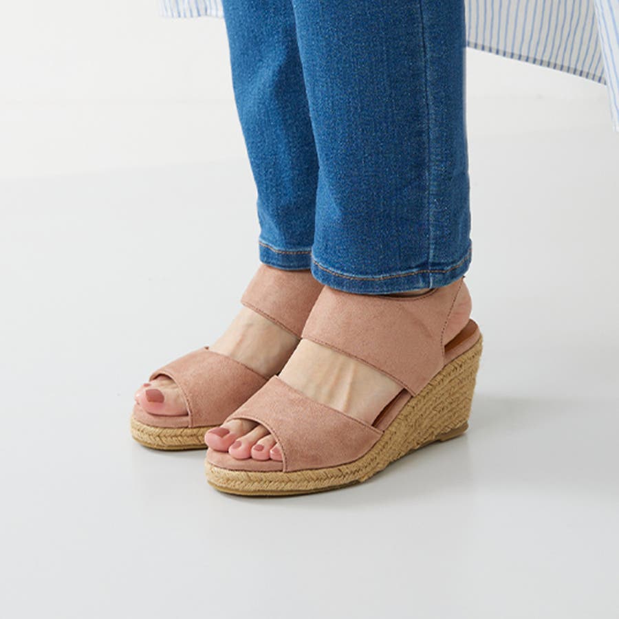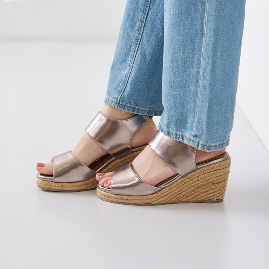 ジュート素材のヒールはカジュアルなイメージが強くなりがち。