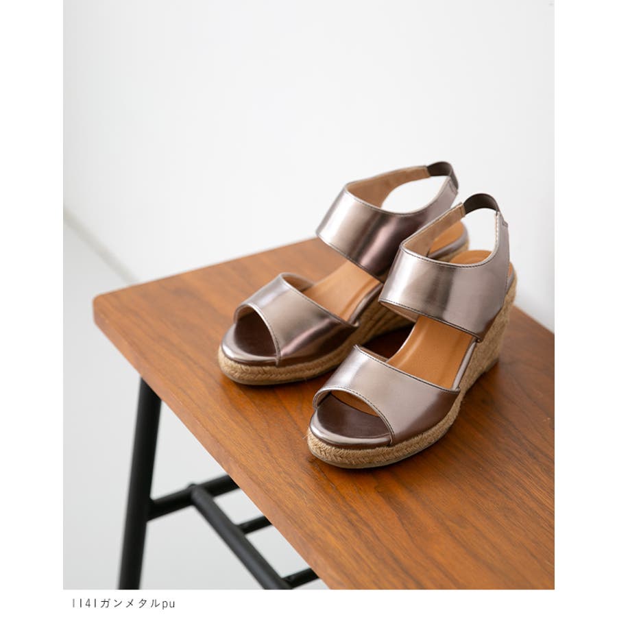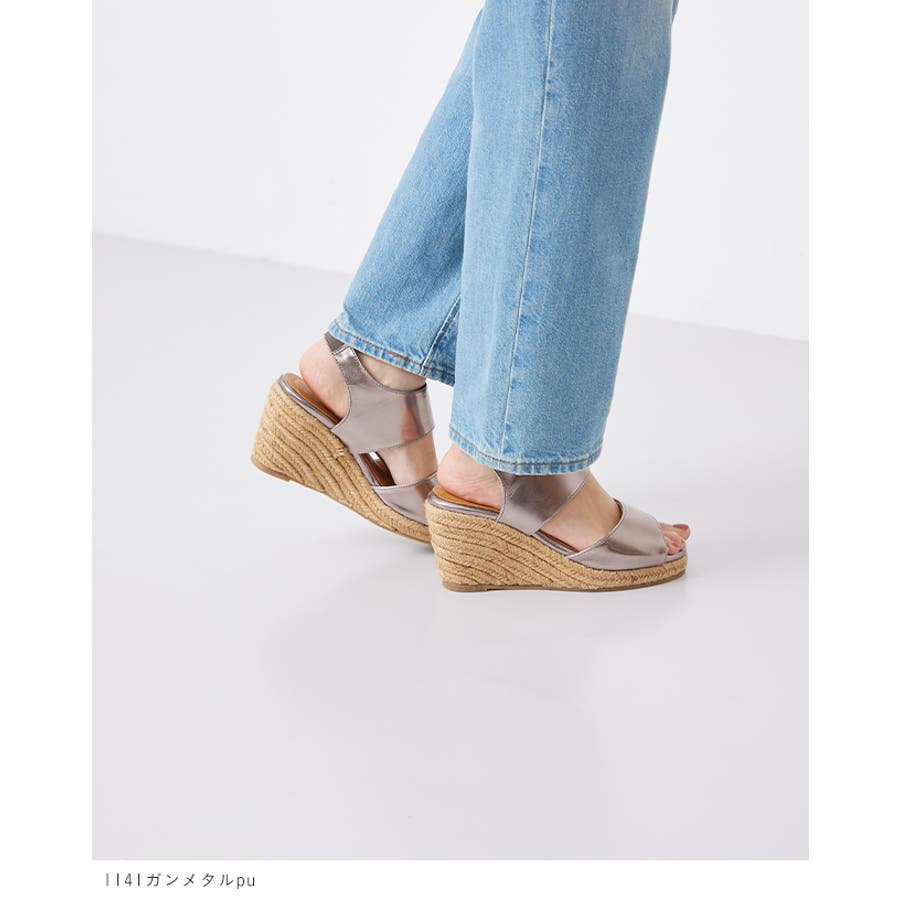 【1141ガンメタルpu】ゴムストラップ 7cmヒール ジュートサンダル
