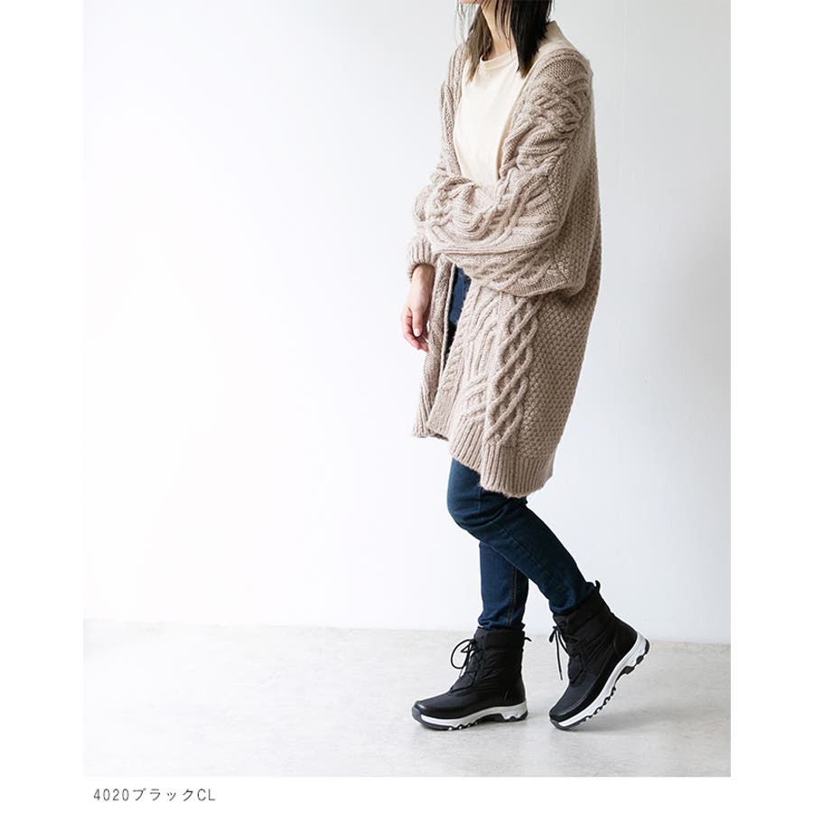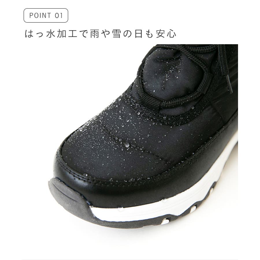 アッパー(外側の生地)の表面には、はっ水加工を施して雨や雪にも耐性があり天気に左右されることなく着用可能です。