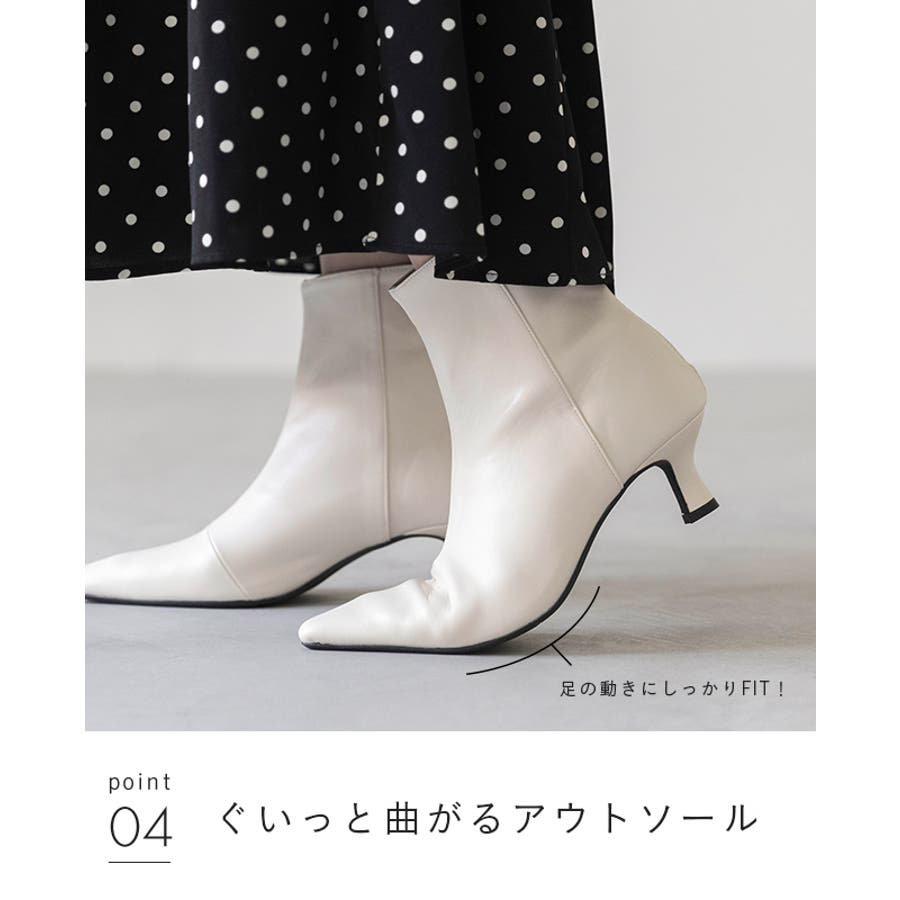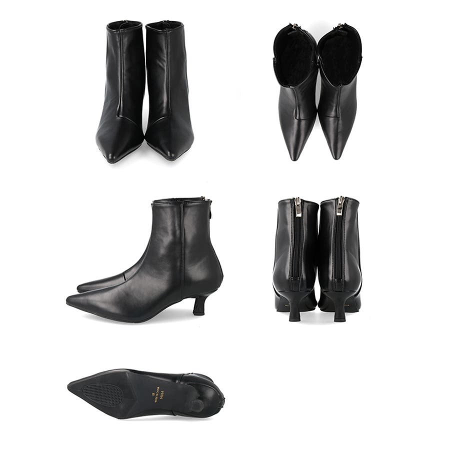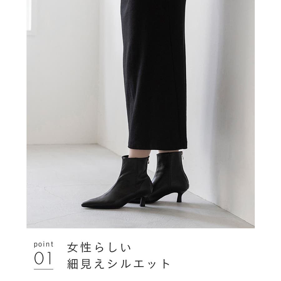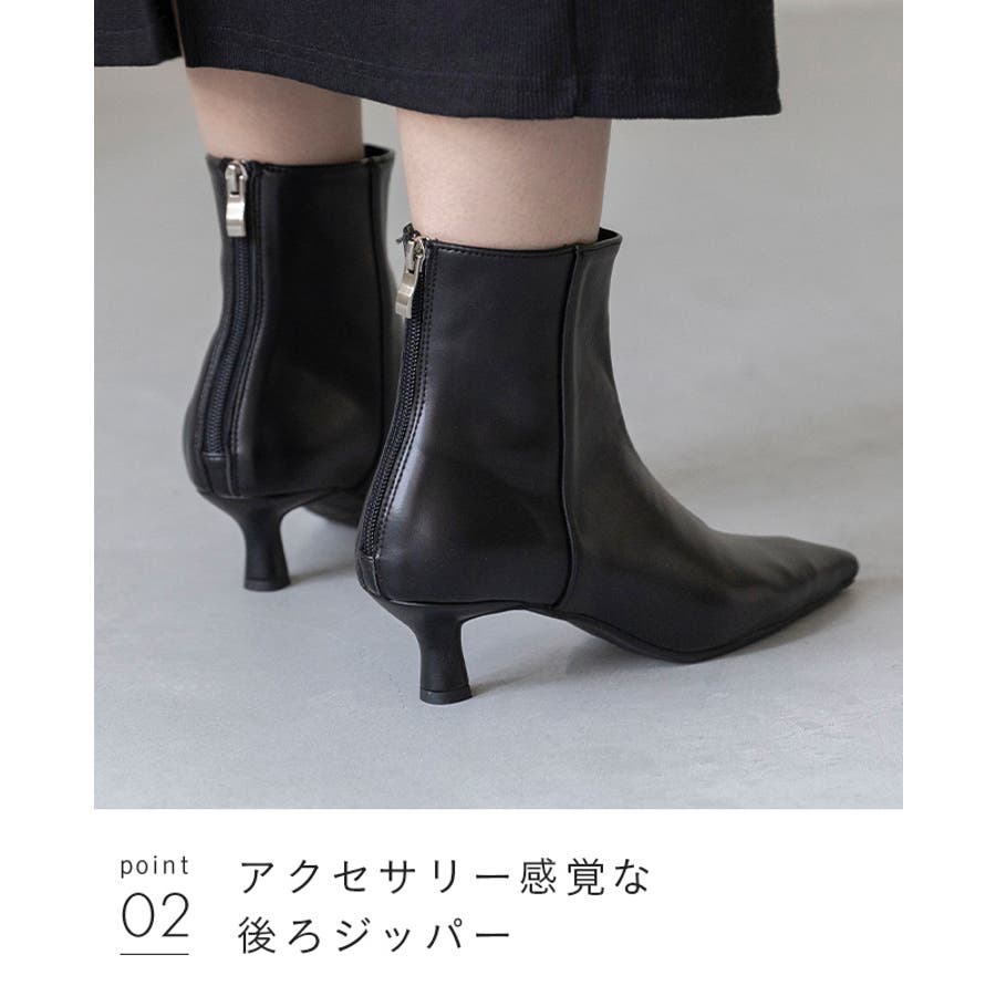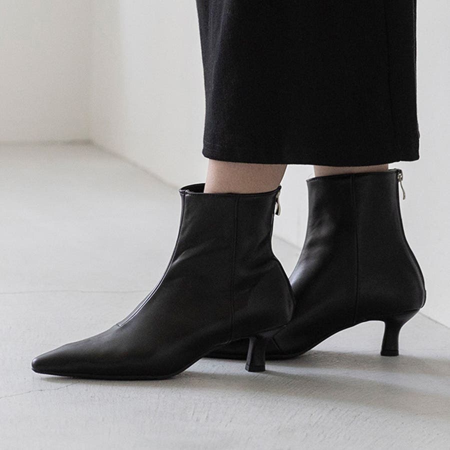 ジッパーをあえて後ろ側につけることでアクセサリー感覚で楽しめて、足もとのポイントにも。