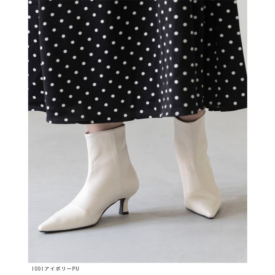 ポインテッドトゥと変形ヒールが作る華奢見えシルエット。