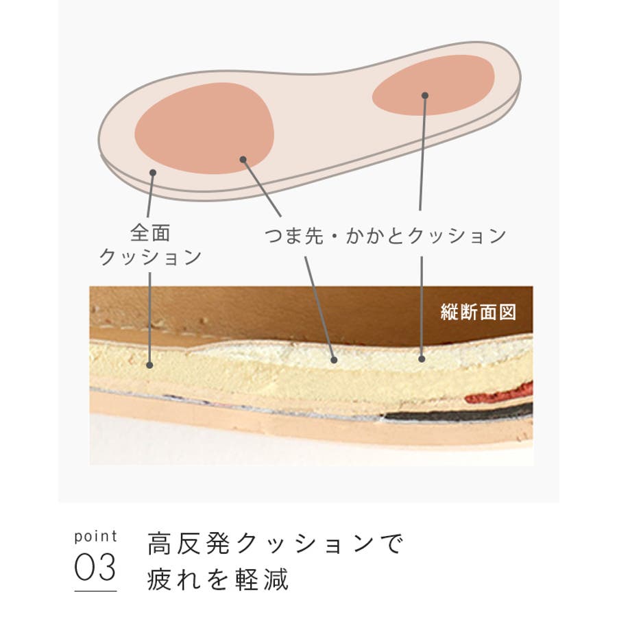 歩くとき体重のかかる部分をサポートしてくれる、ふわふわの高反発インソールだから長時間歩いても疲れにくい。