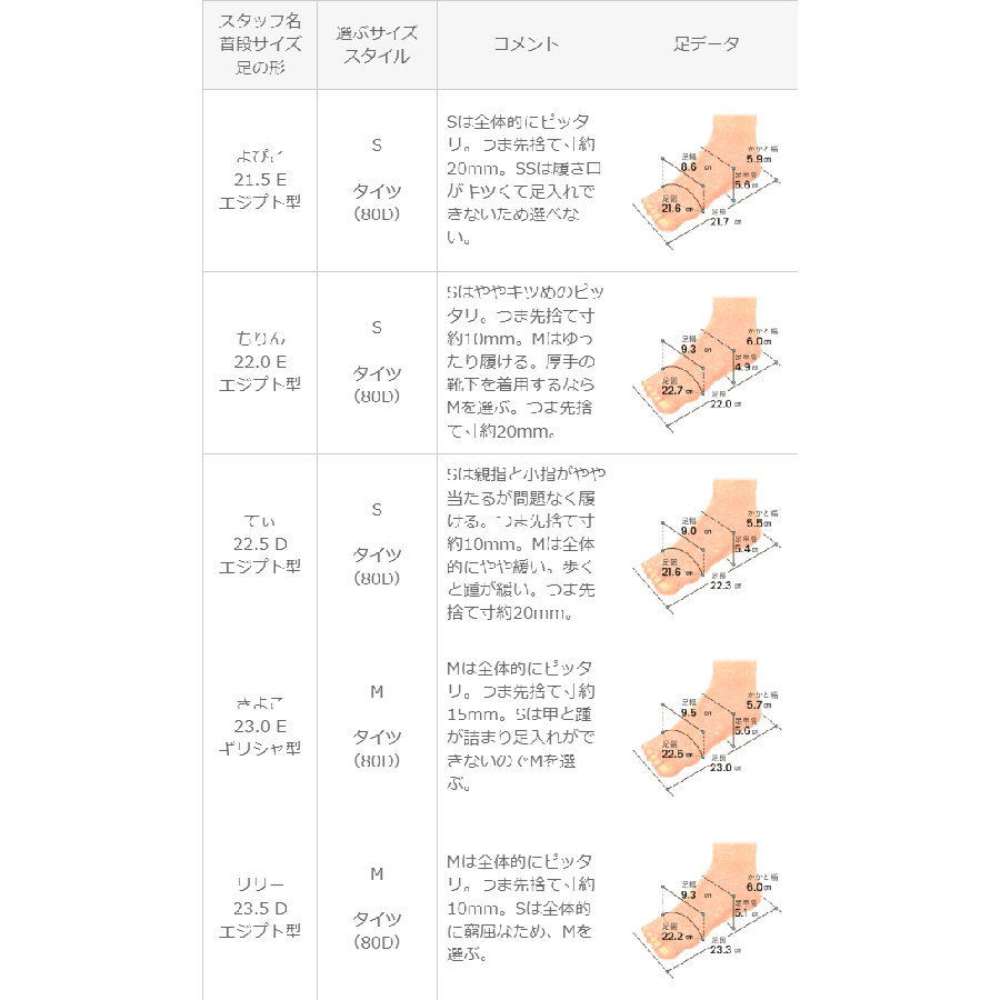 ※足の形には個人差があります。スタッフ試着感想は参考程度にお考え下さい。