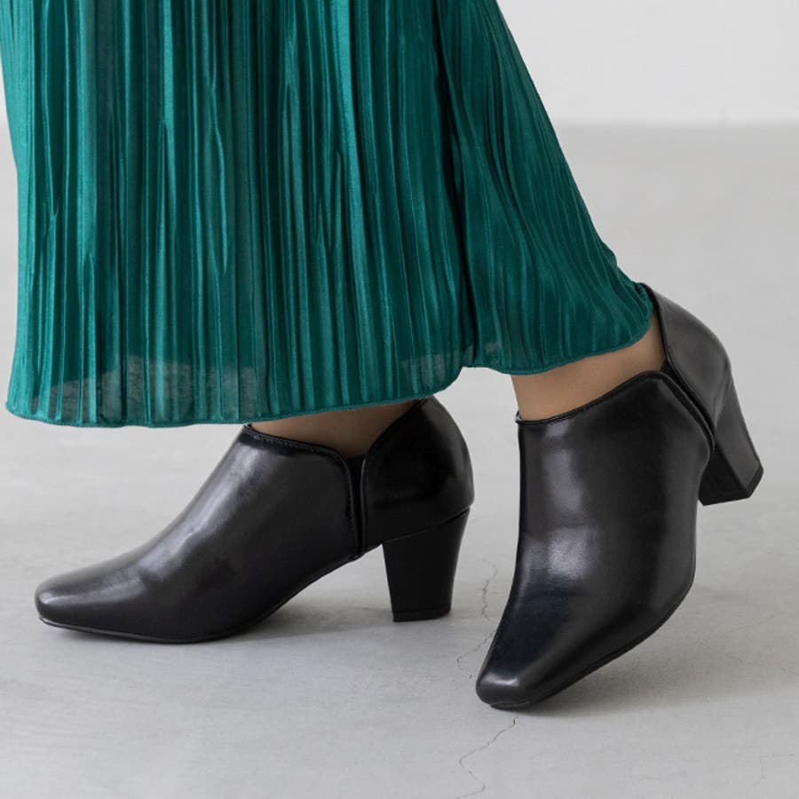 『パンプス感覚でさっと履けるスクエアトゥサイドゴアブーティ』