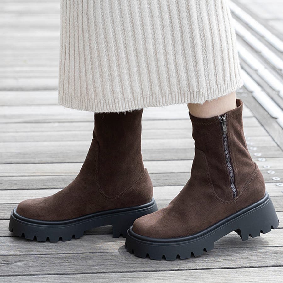 大人の余裕を感じさせるスタイルアップ厚底ブーツ