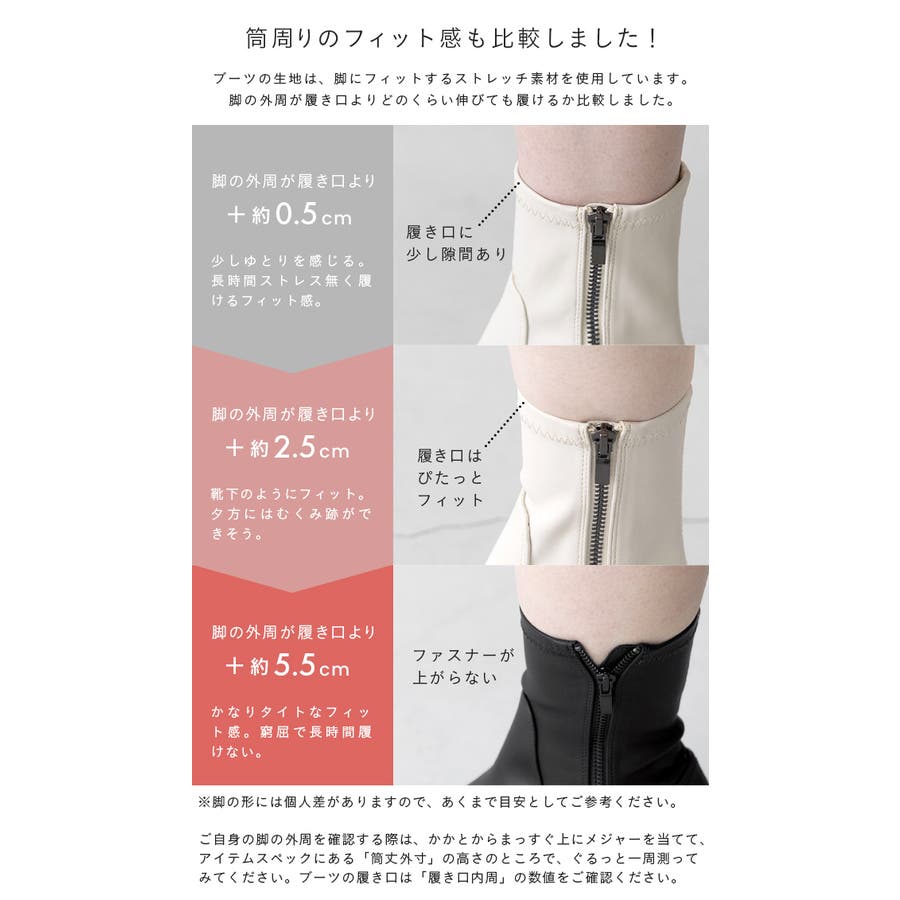 筒周りは細めに設計し、伸縮の良いストレッチ素材で脚に吸い付くようにフィット。