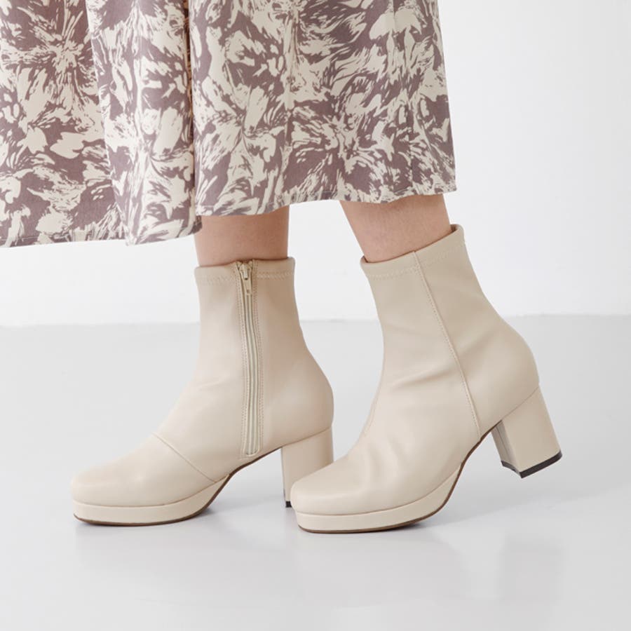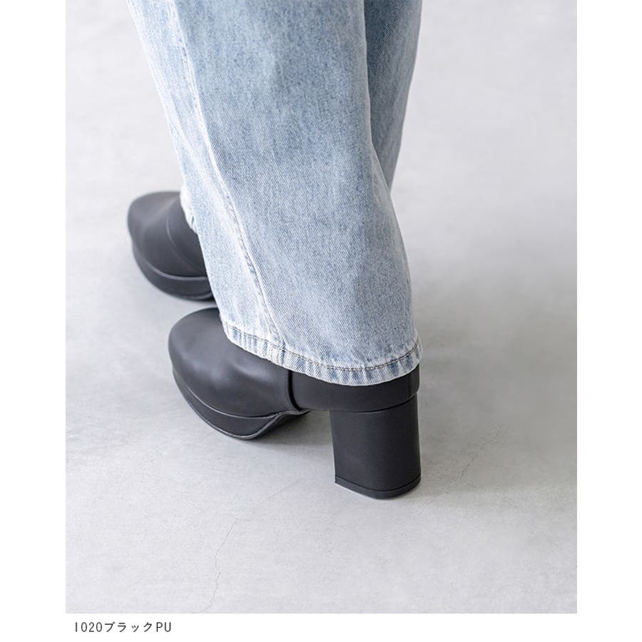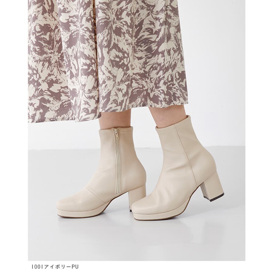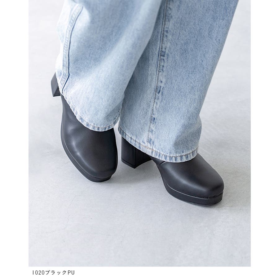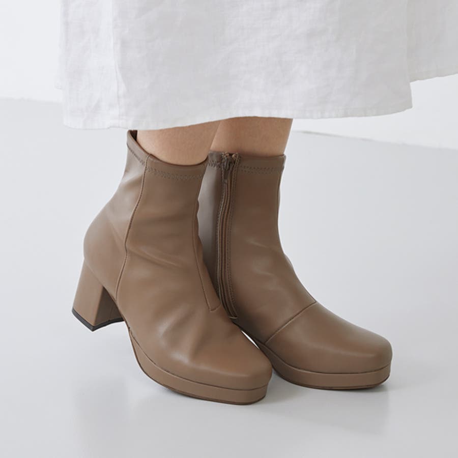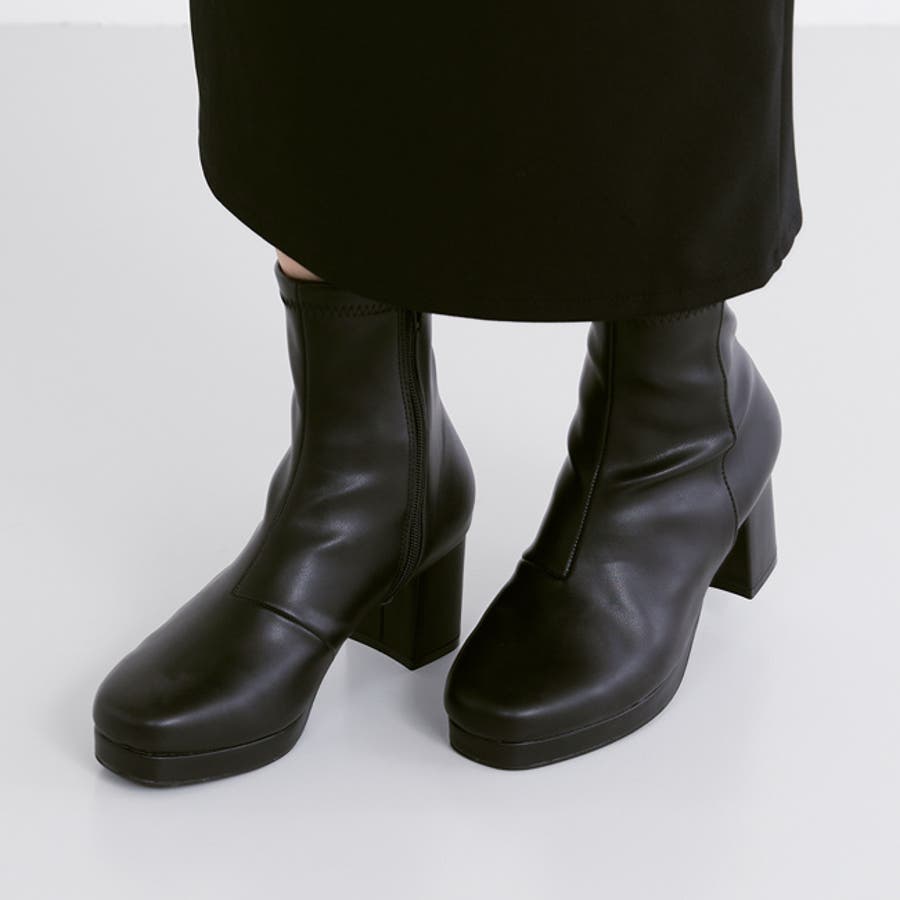旬デザインを丸みフォルムでやわらかに スクウェアトゥ プラットフォーム ヒールブーツ