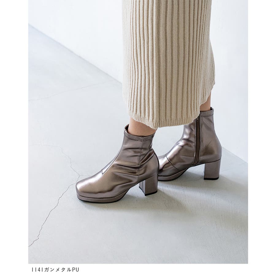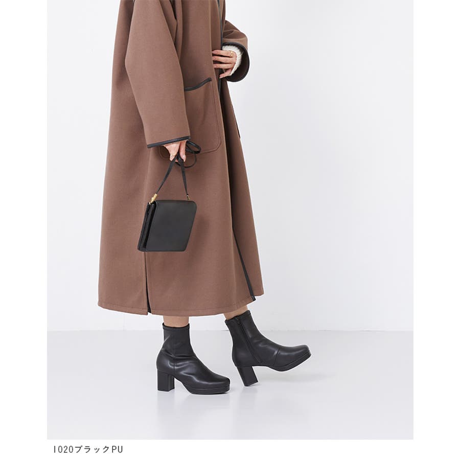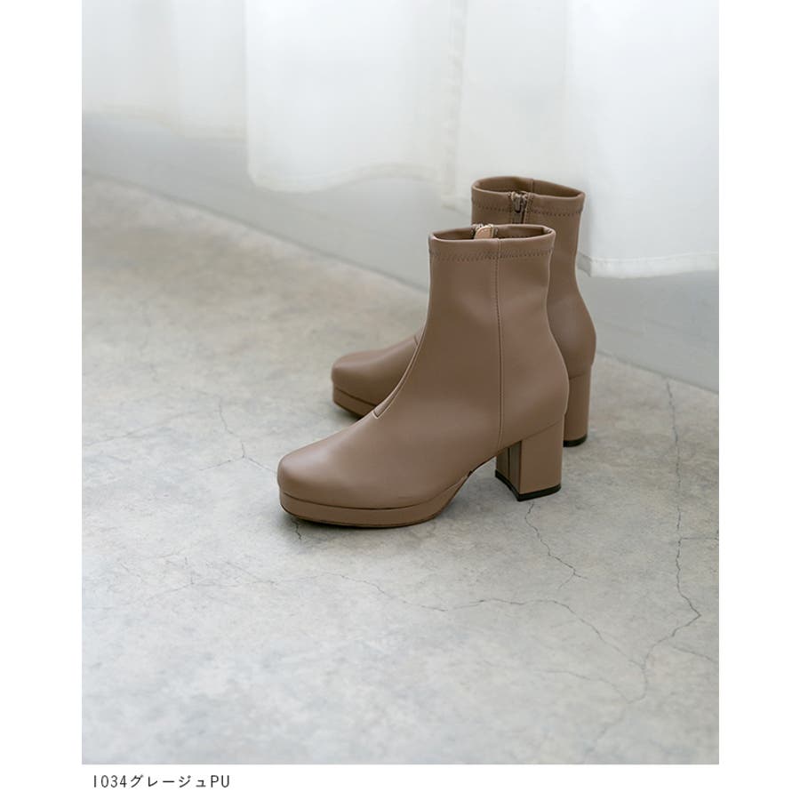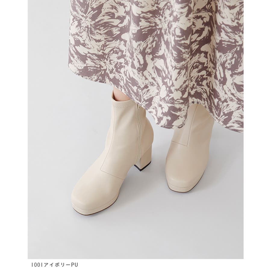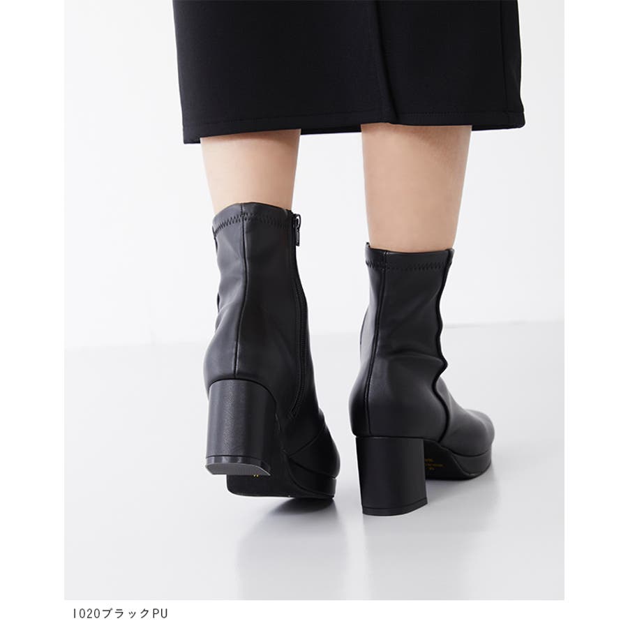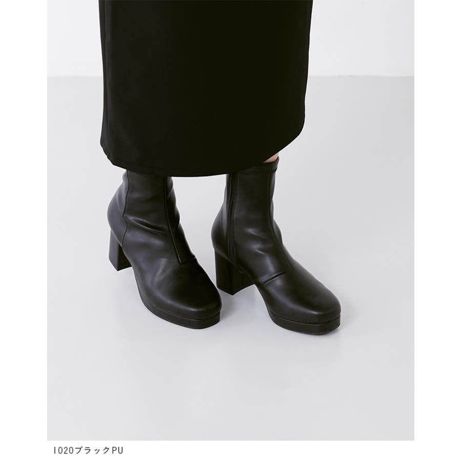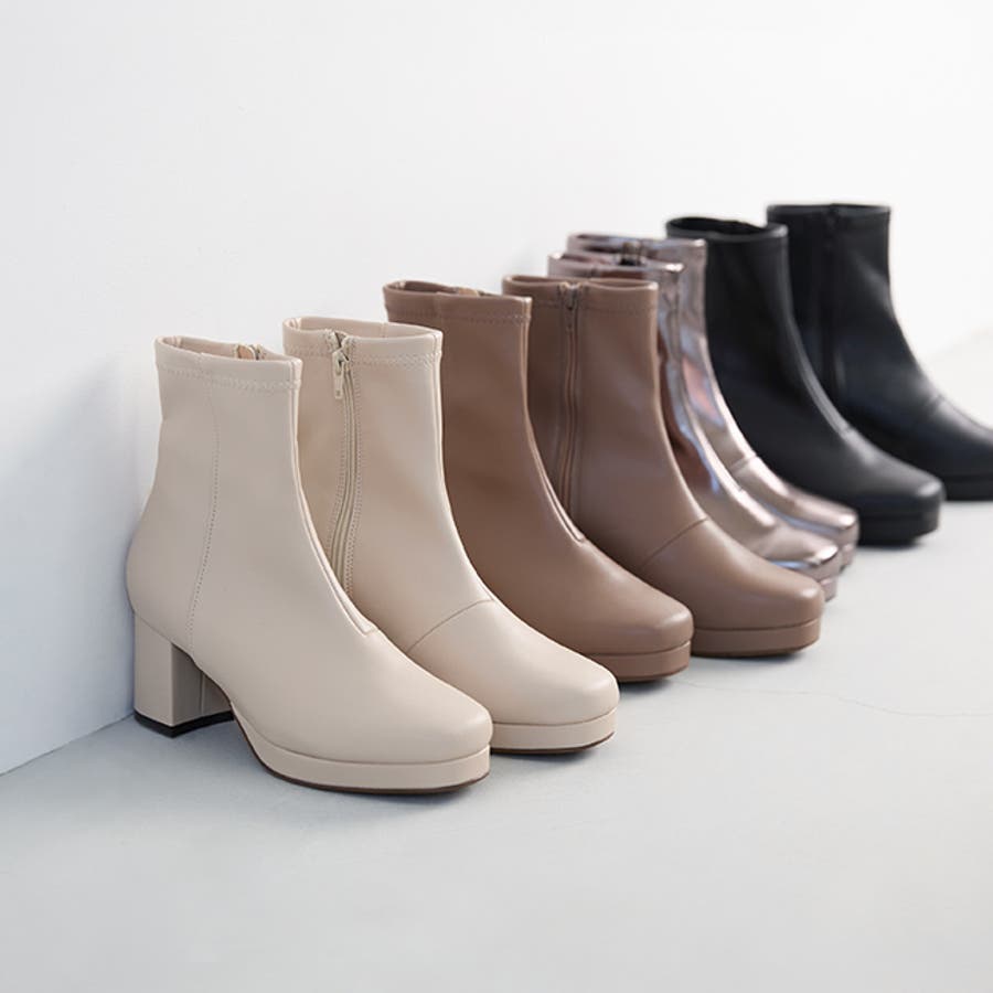 旬デザインを丸みフォルムでやわらかに スクウェアトゥ プラットフォーム ヒールブーツ