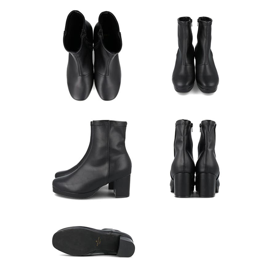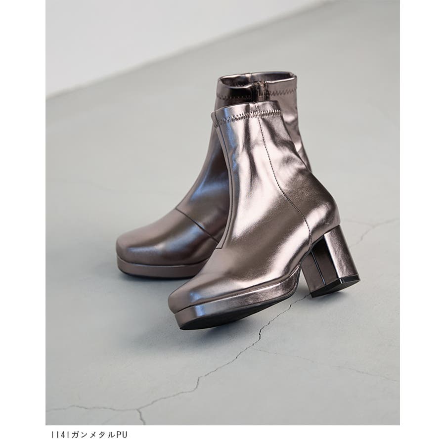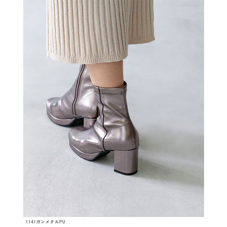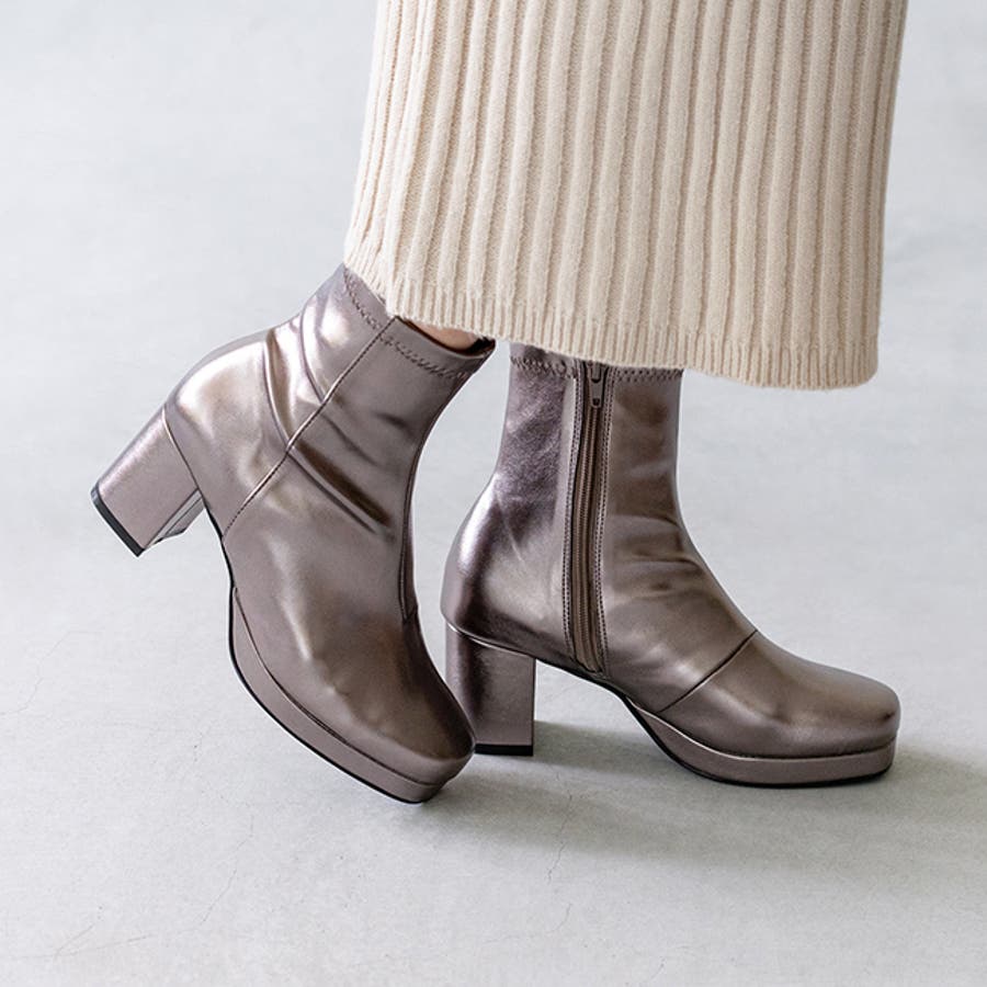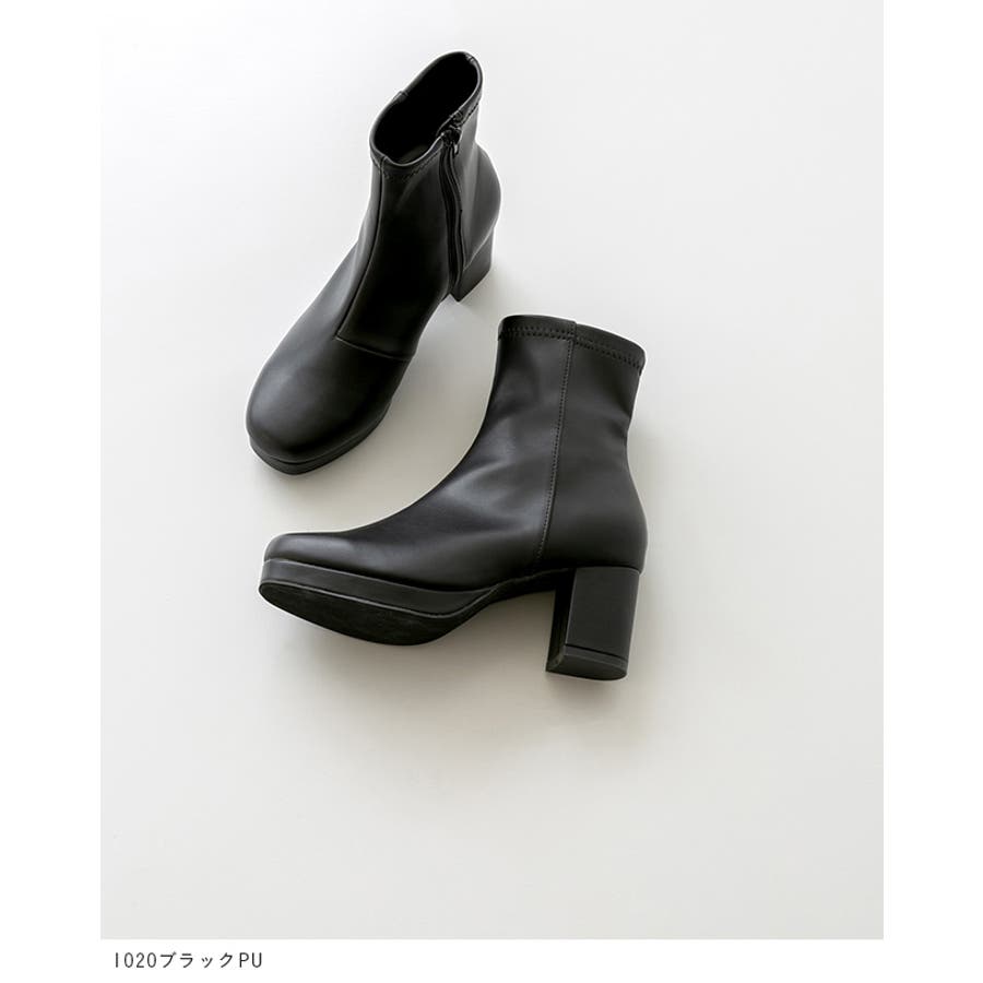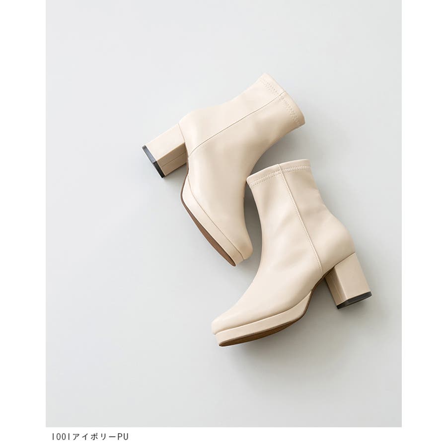 旬デザインを丸みフォルムでやわらかに スクウェアトゥ プラットフォーム ヒールブーツ